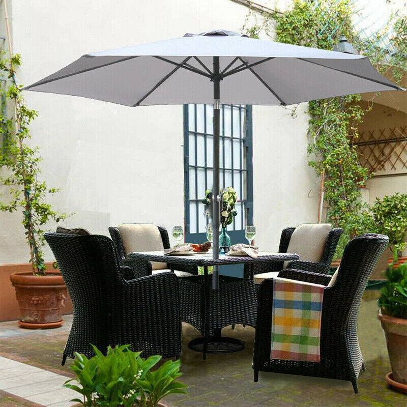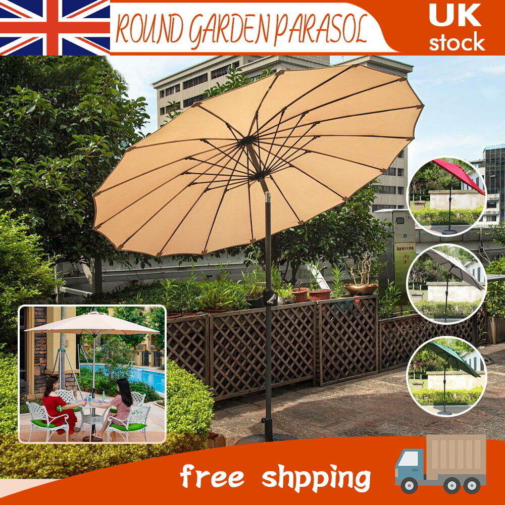 2.7M Round Garden Parasol Umbrella Patio Sun Shade Aluminium Crank Adjustable