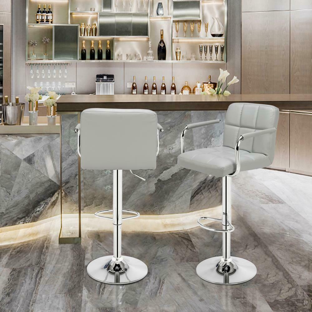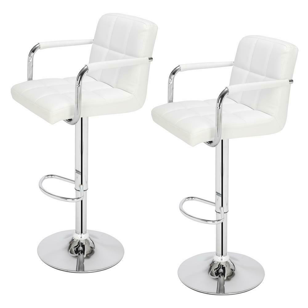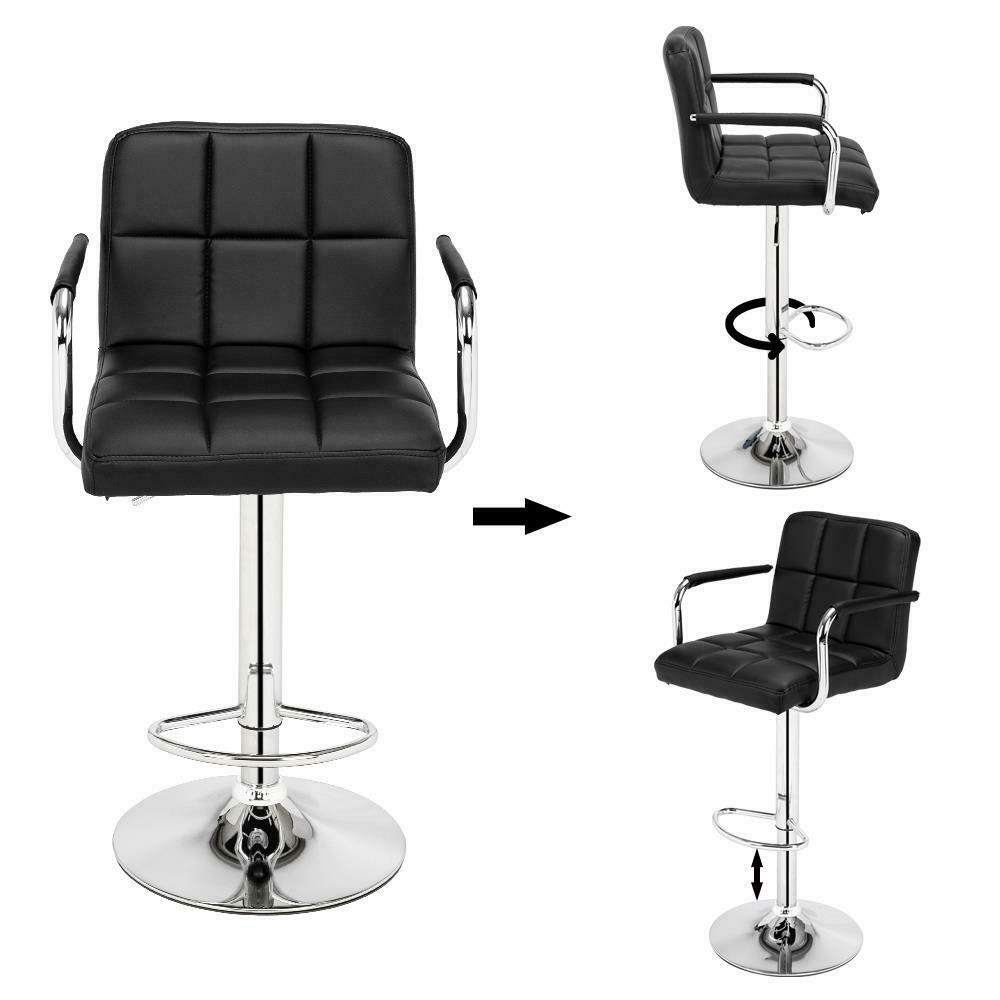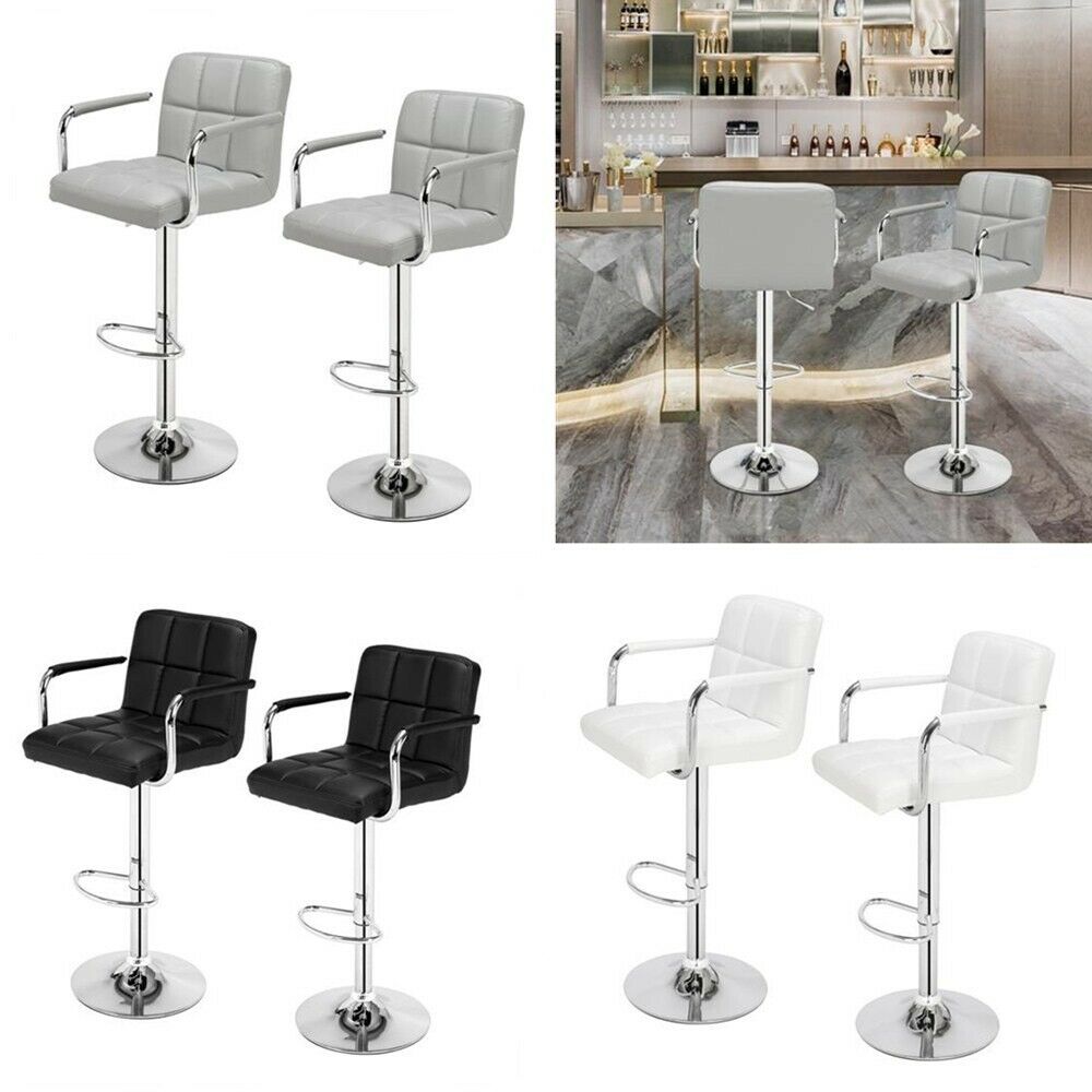 2×Bar Stools Leather Chairs Breakfast Chairs Swivel Gas Lift Kitchen with Arm