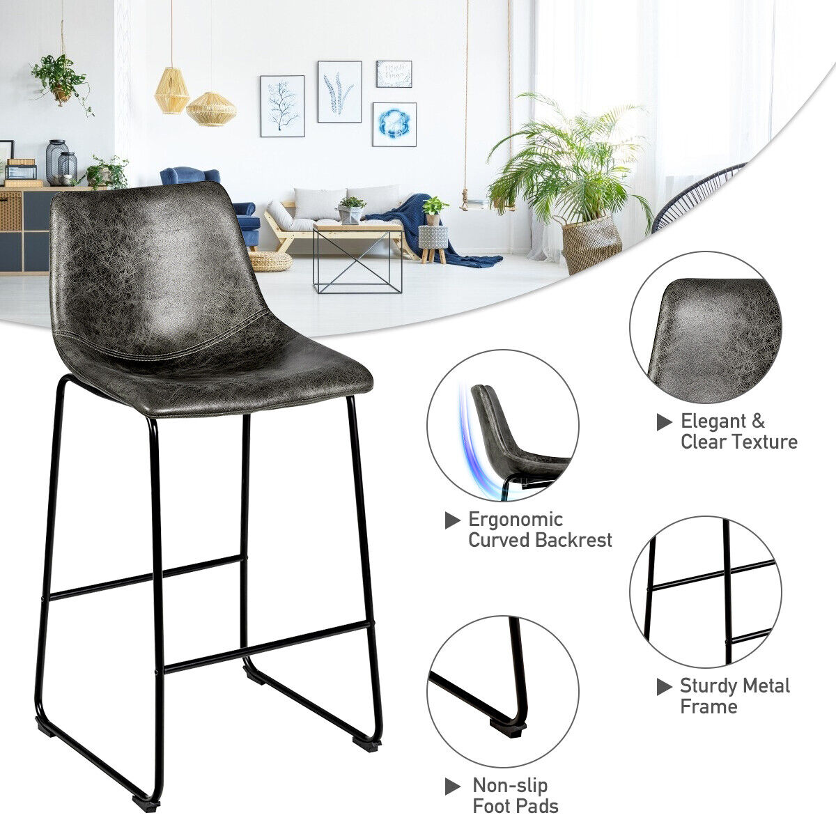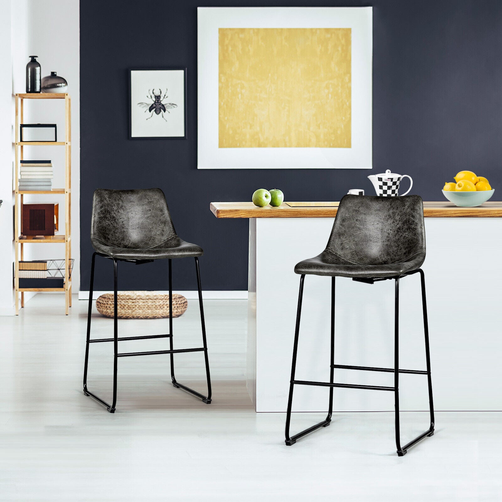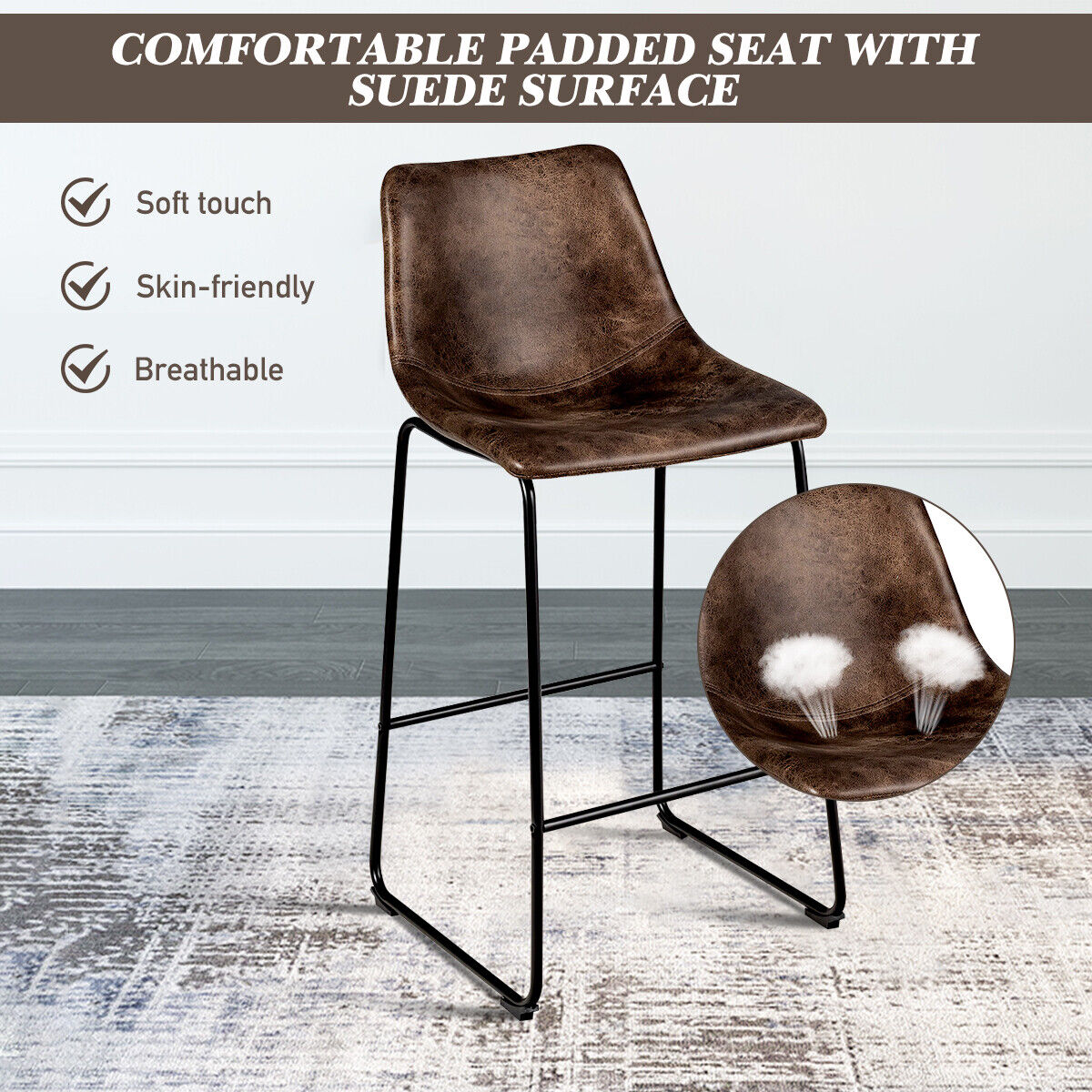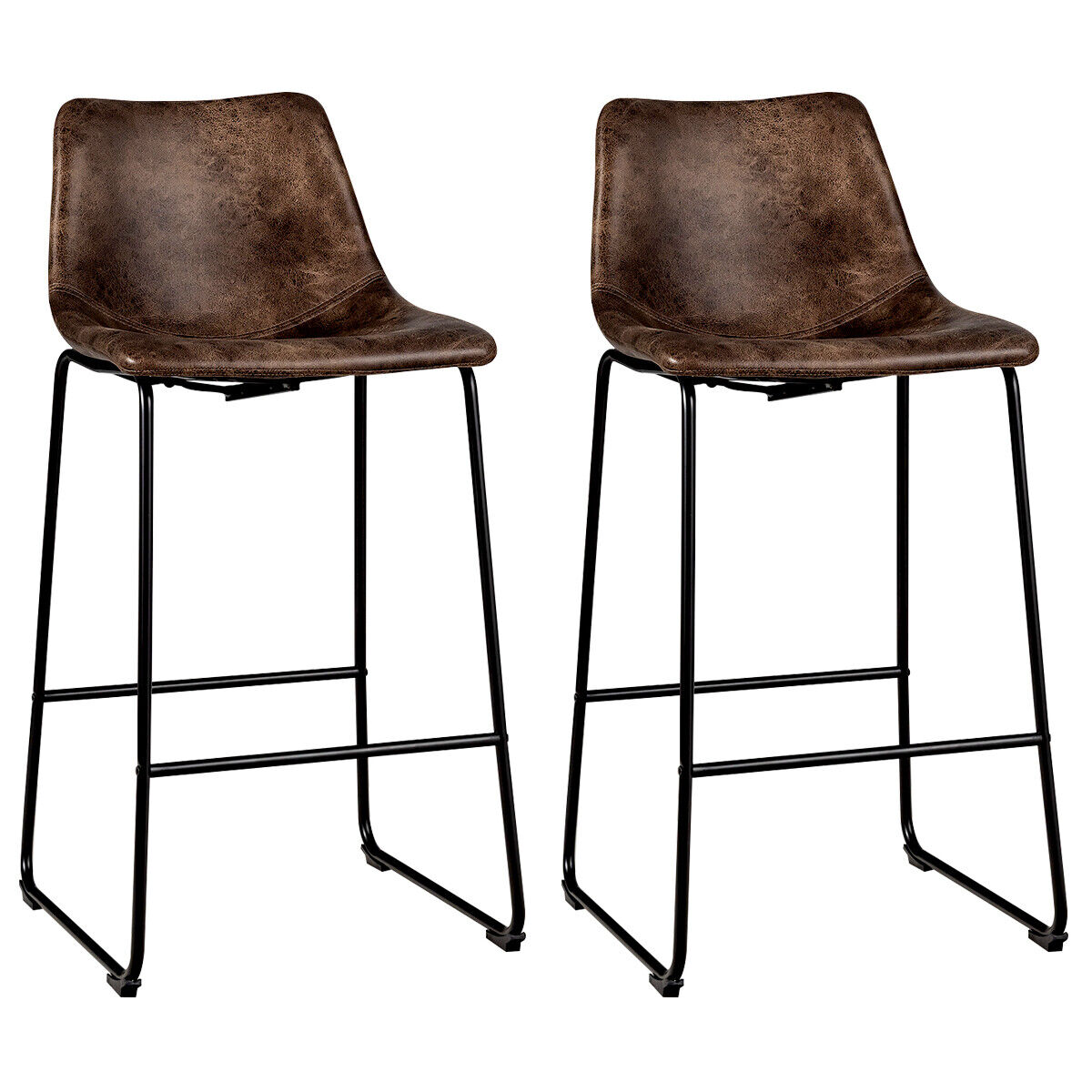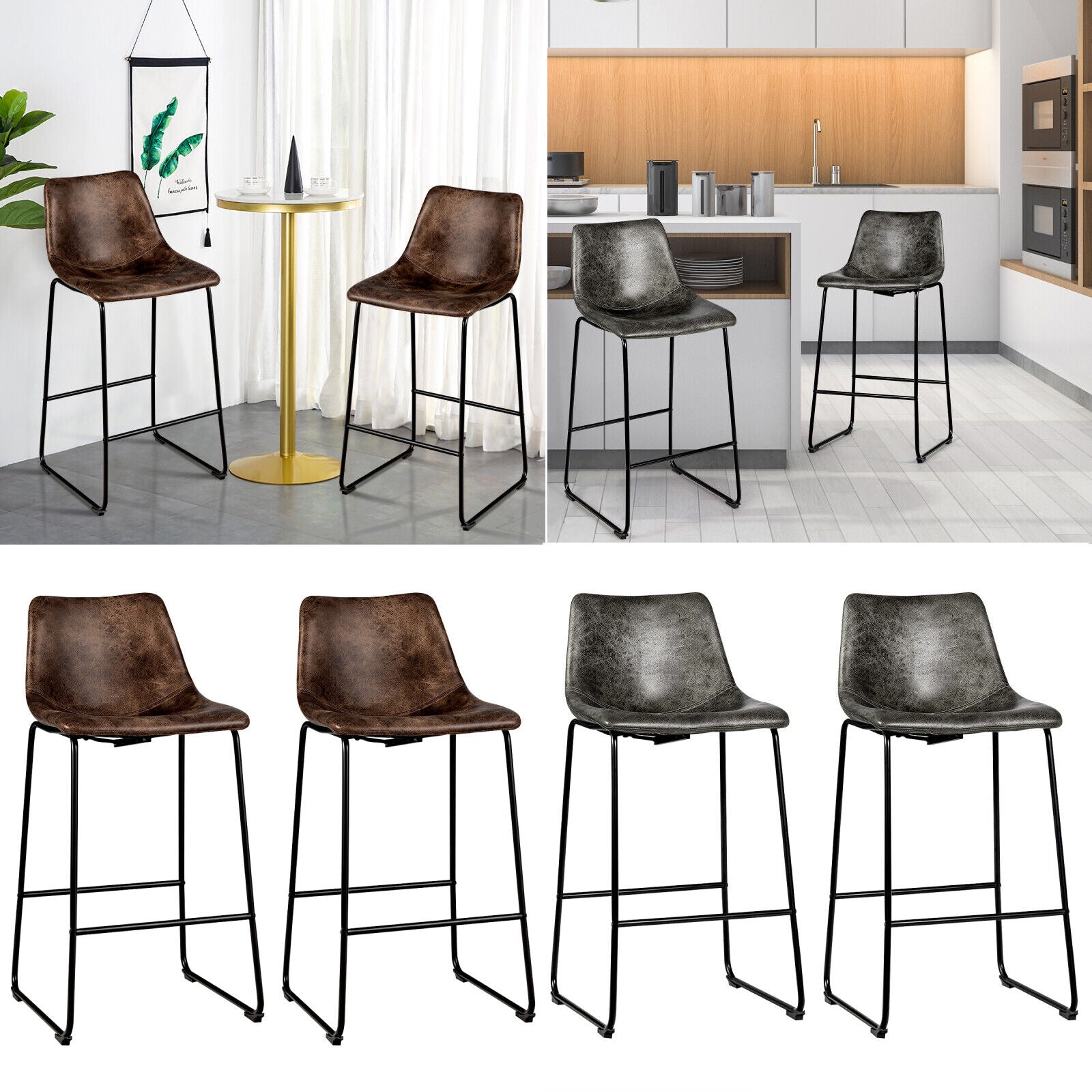 2× Bar Stools Vintage Leather Kitchen Counter Upholstered Chairs W/Footrests