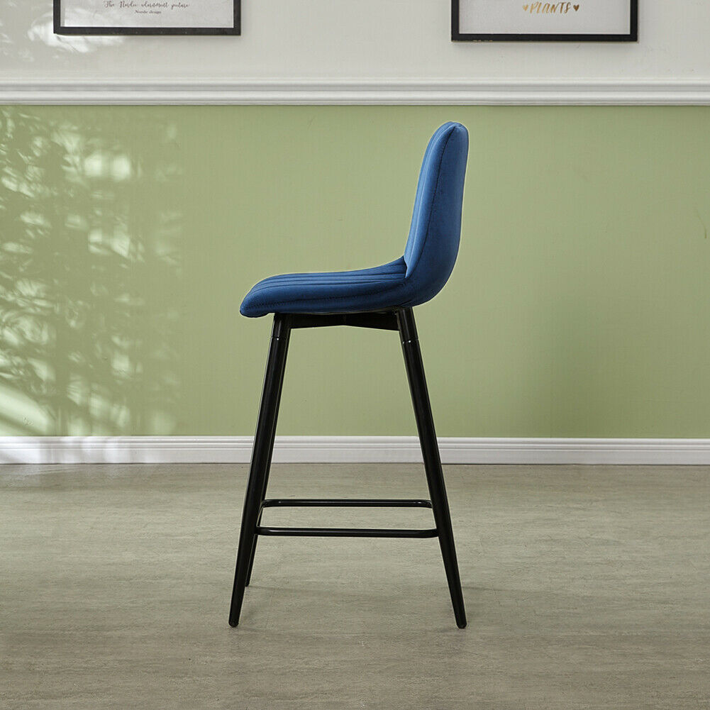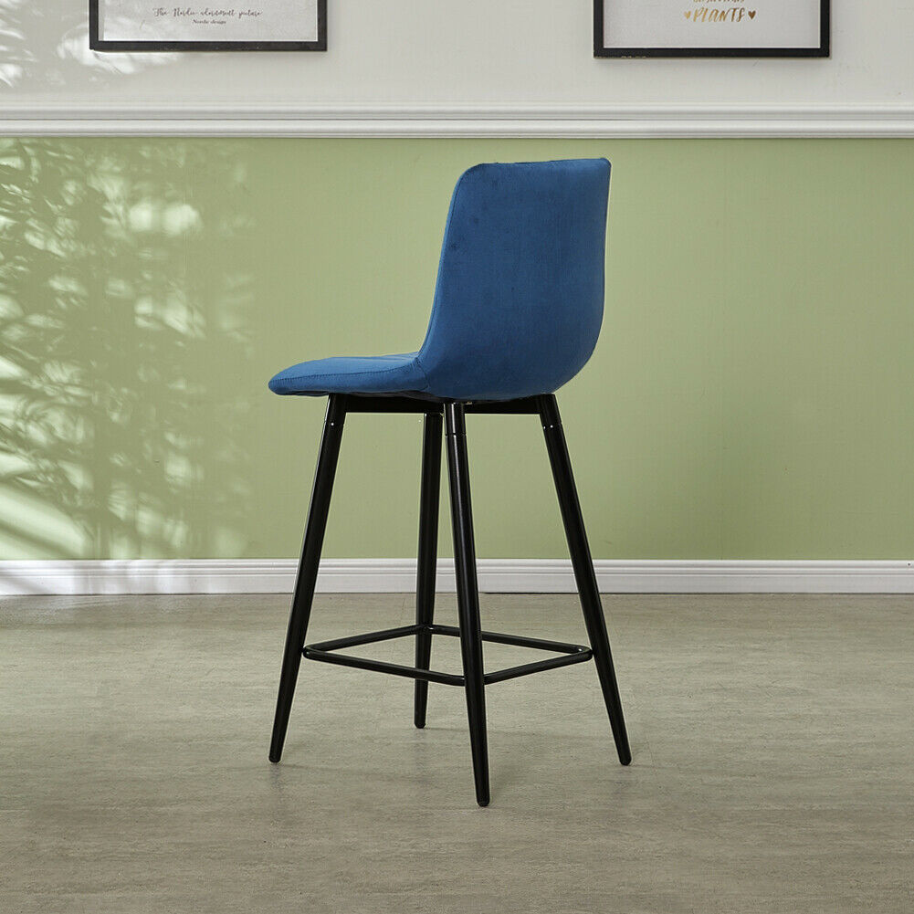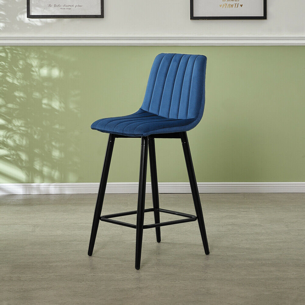 2* Barstools Set Velvet Padded Metal legs Footrest Bar Stools Breakfast Chair