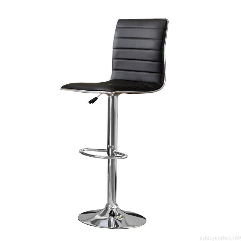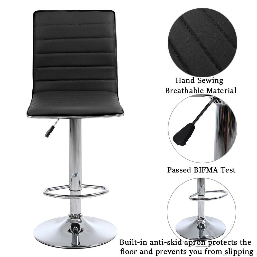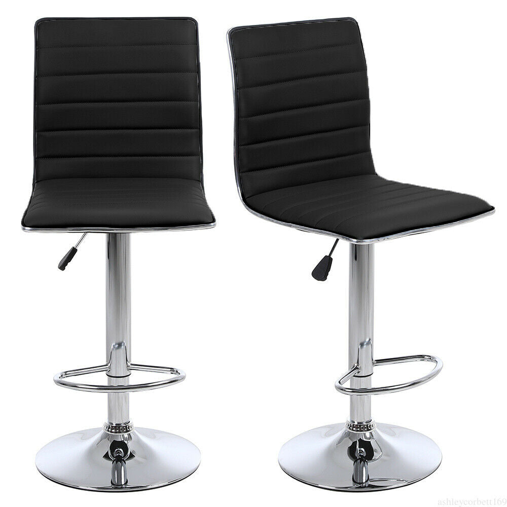 2* Black Bar Stool Leather Swivel Gas Lift Footrest Home Kitchen Pub Breakfast
