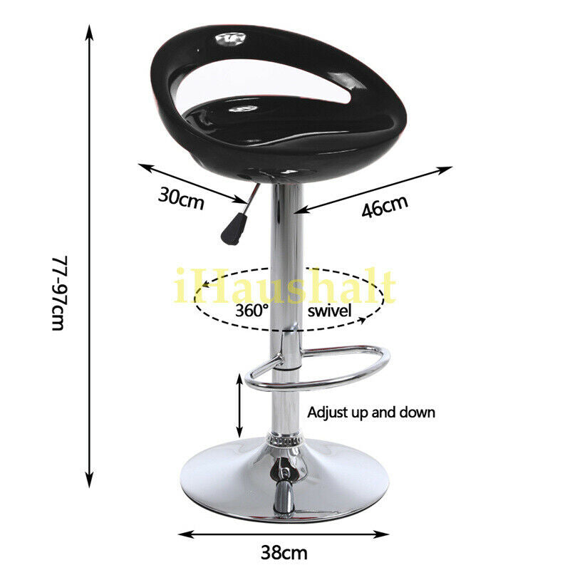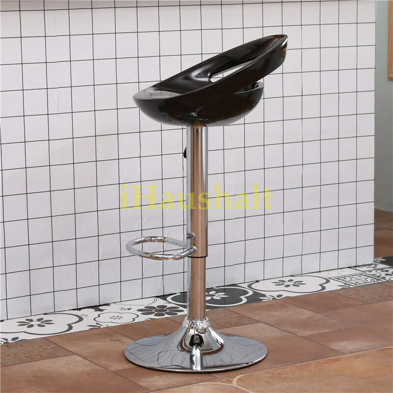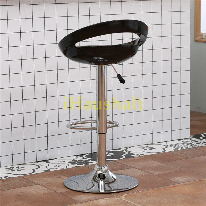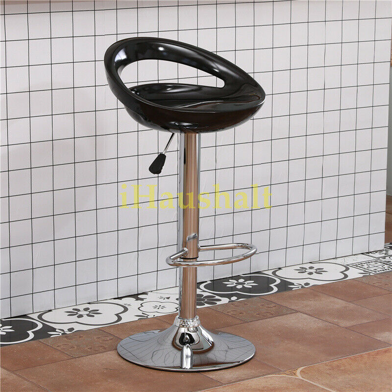 2* Black Bar Stools Curved Glossy ABS Seat Gas Lift Swivel Chrome Leg Pub Club