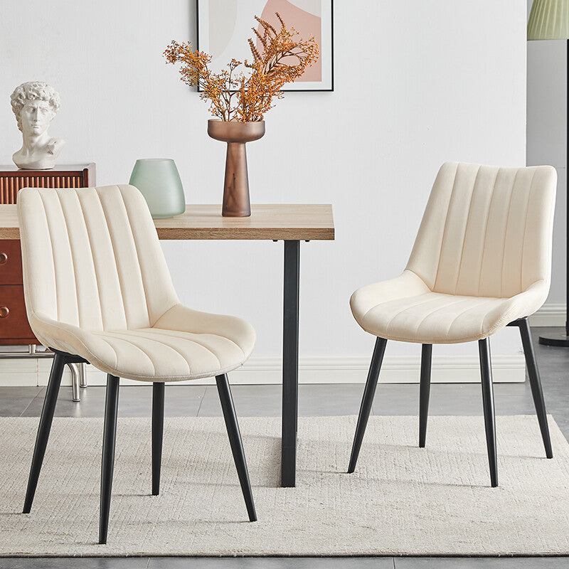 2 Dining Chairs Set Velvet Upholstered Back Dining Room Chair With Metal Legs