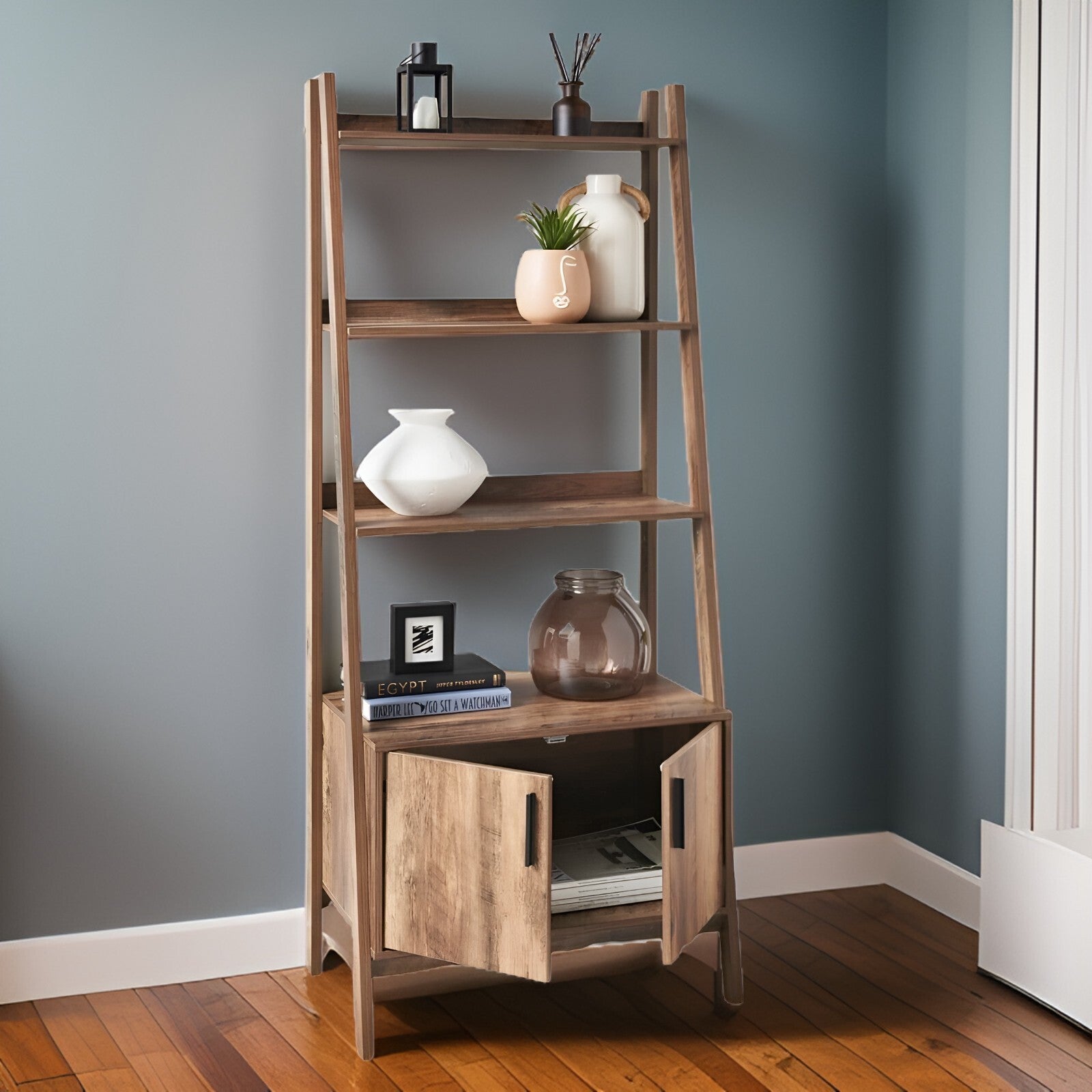 2 Door 4 Tier Shelves Tall Bookcase Ladder Shelf Bookshelf Storage Display Unit