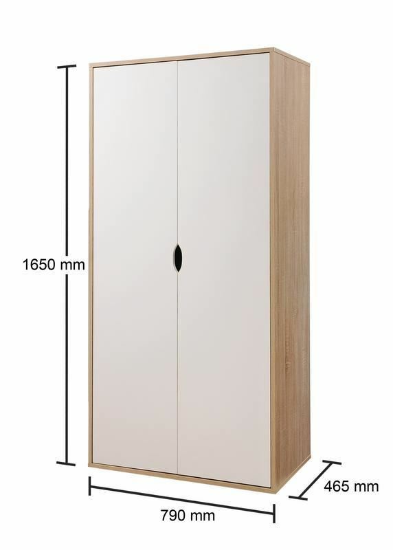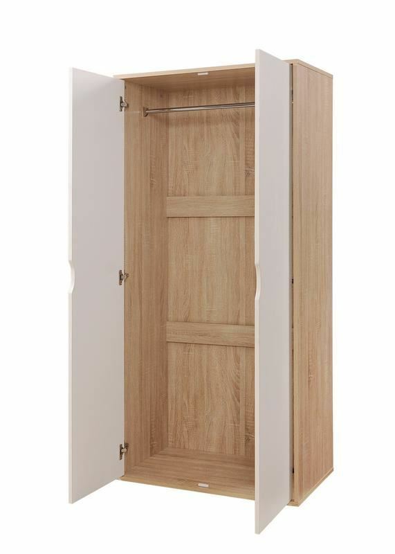 2 Door Double Wardrobe White & Sonoma Oak Effect Bedroom Furniture Cupboard