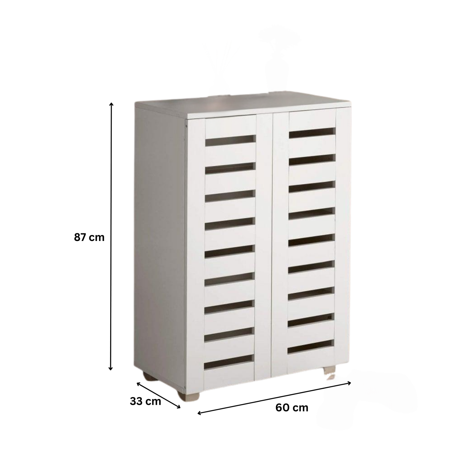 2 Door Shoe Storage Cabinet Rack Stand White Wooden Cupboard Slatted Doors Oslo