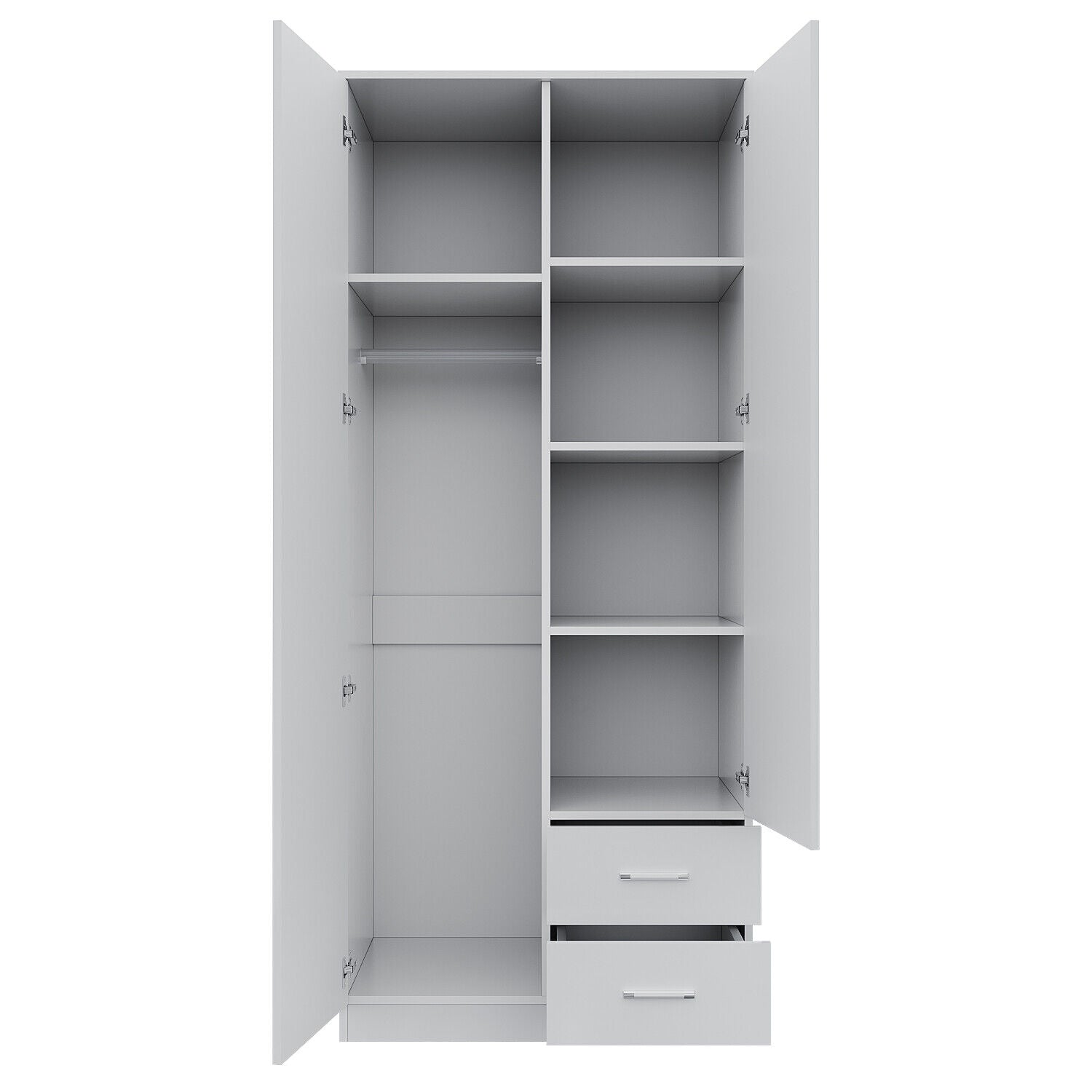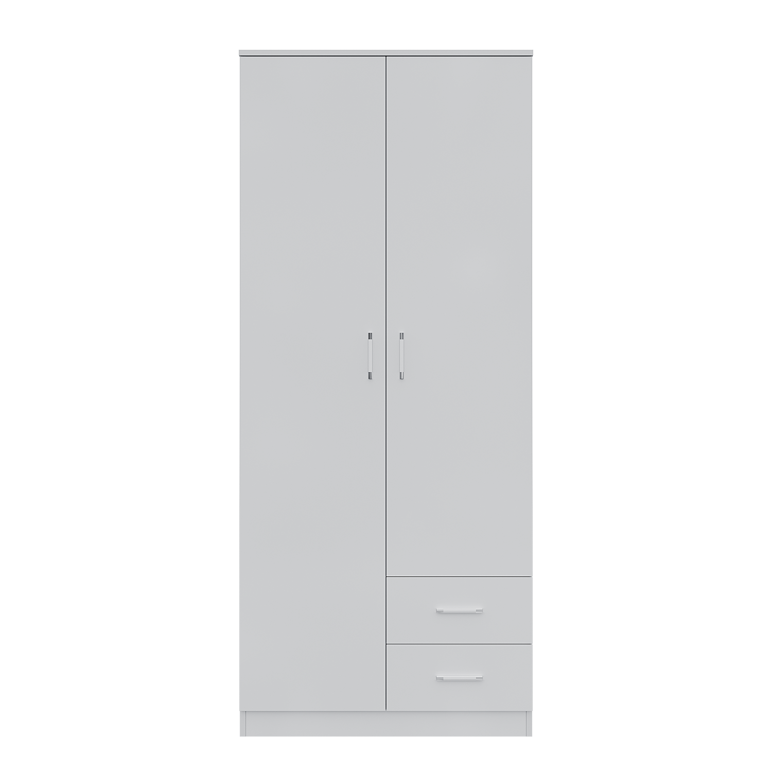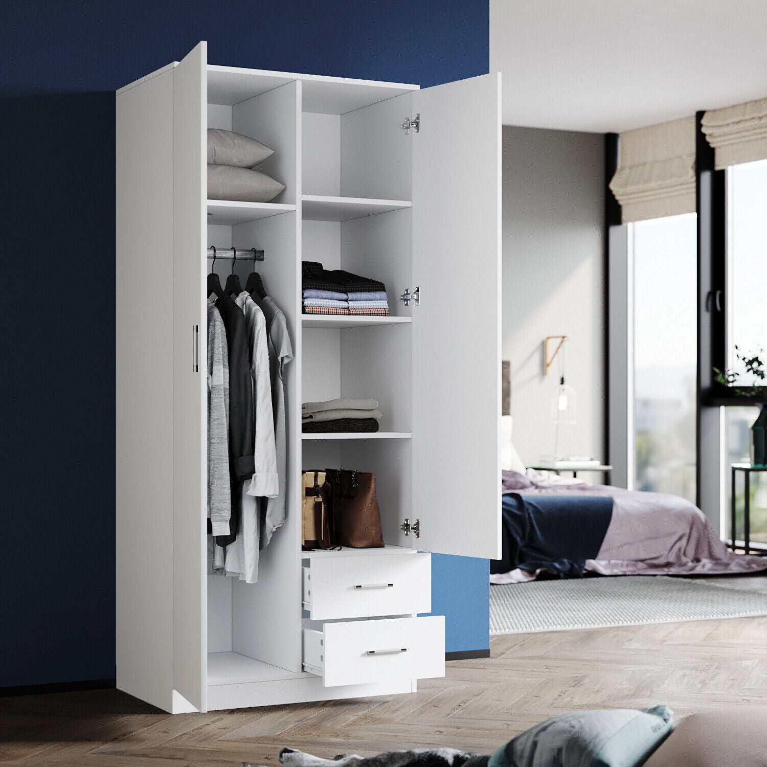 2 Door White Wardrobe with 2 Drawer Hanging Rail Wooden Clothes Storage Cupboard
