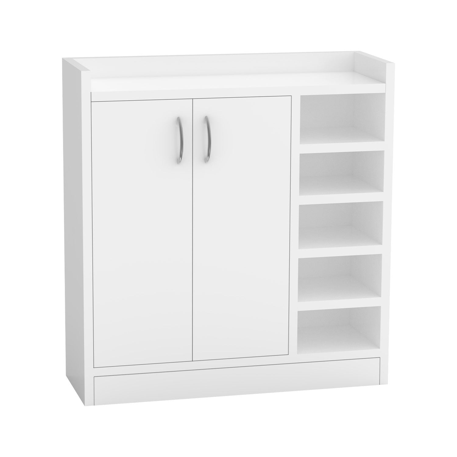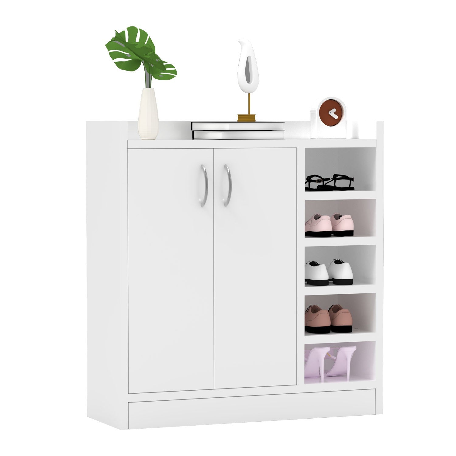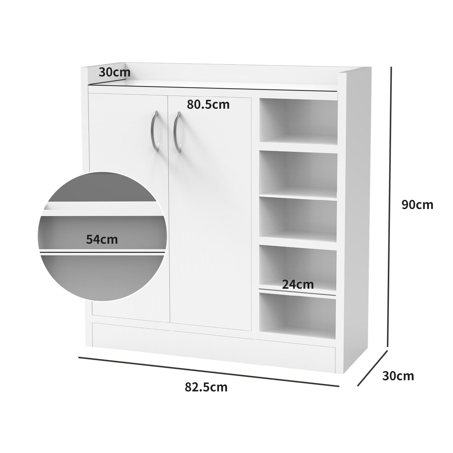2 Door Wooden Shoe Storage Cabinet Rack Stand Cupboard With Side Shelves Rack