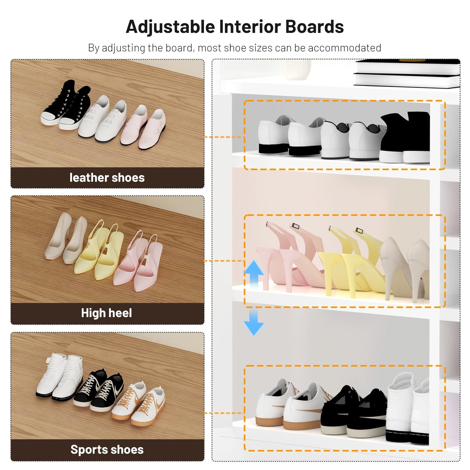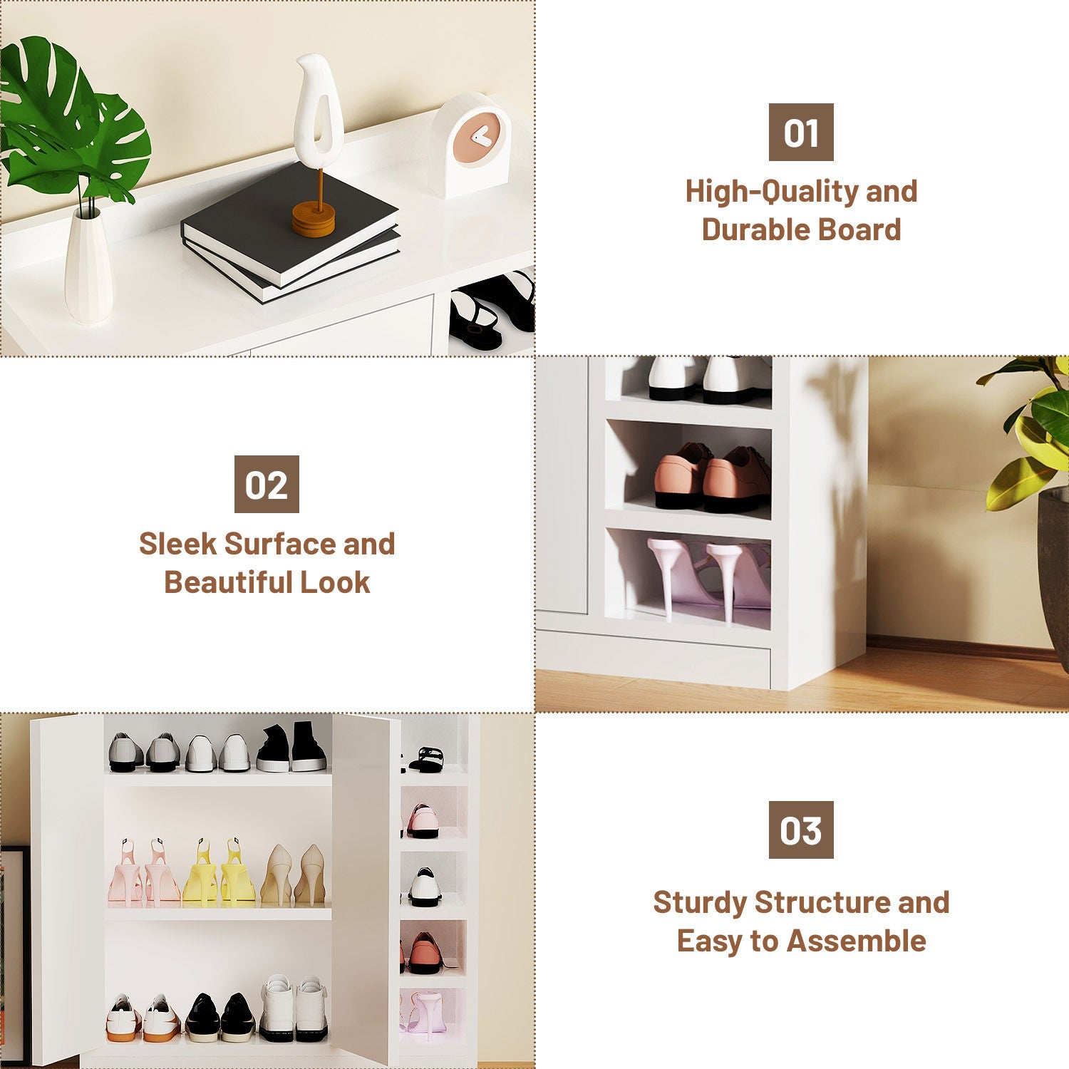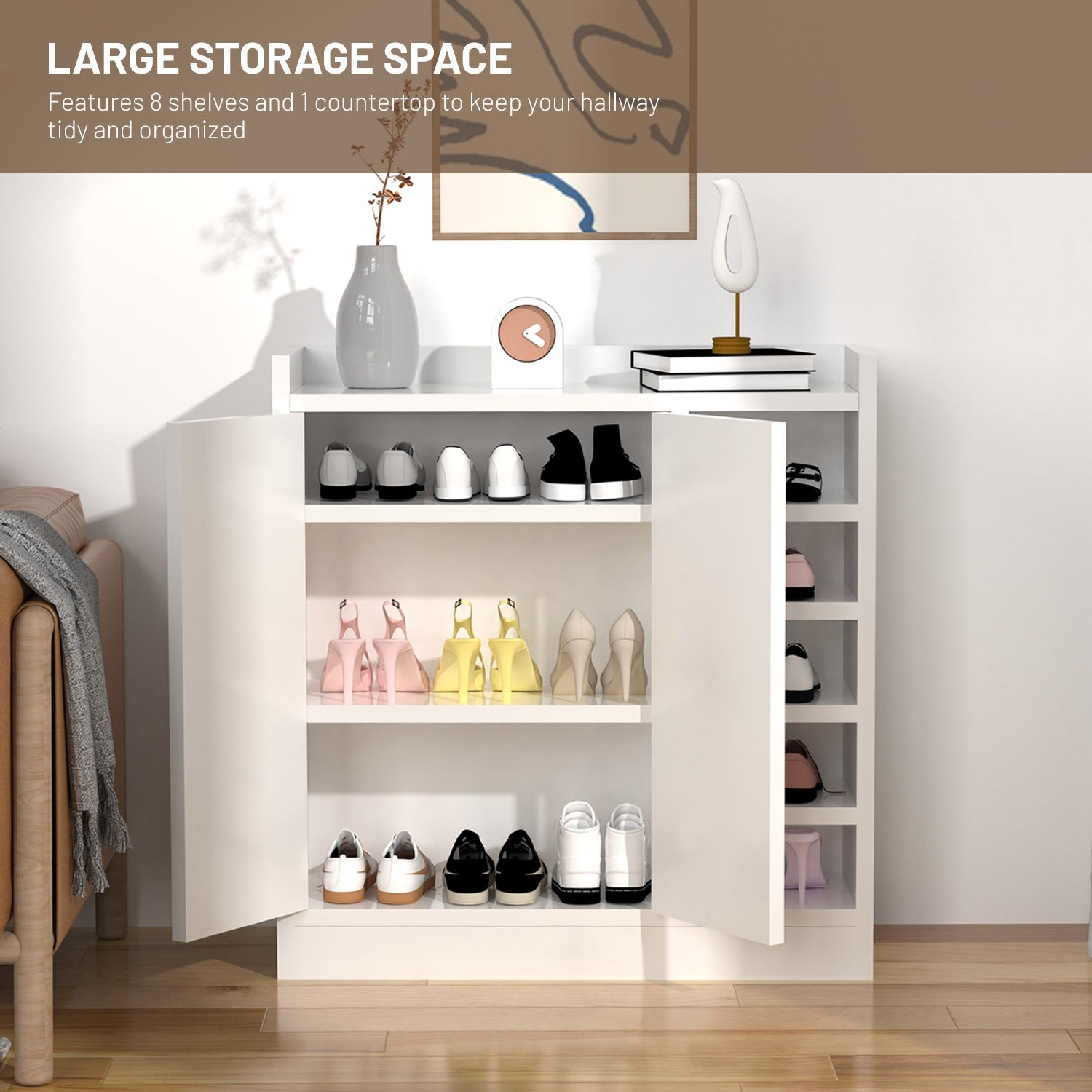 2 Door Wooden Shoe Storage Cabinet Rack Stand Cupboard With Side Shelves Rack