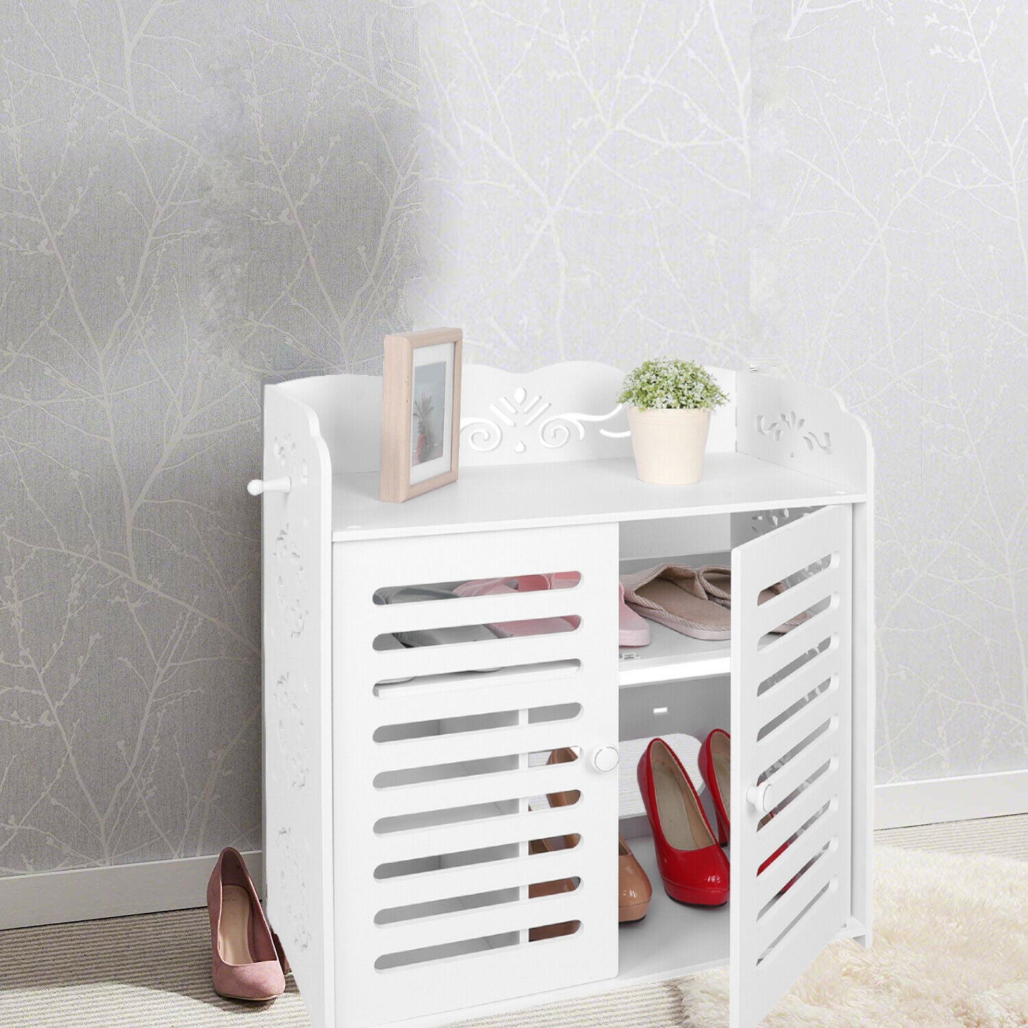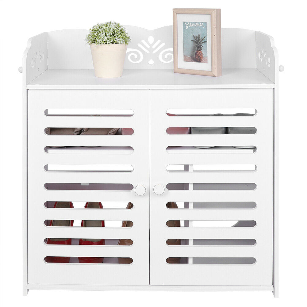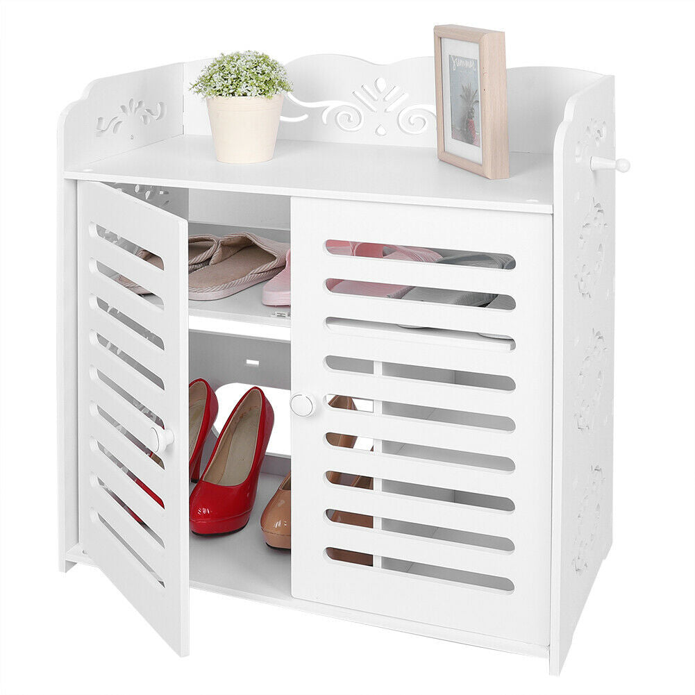 2 Doors Shoe Storage Cabinet Cupboard Footwear Rack Stand Organizer Unit Wooden