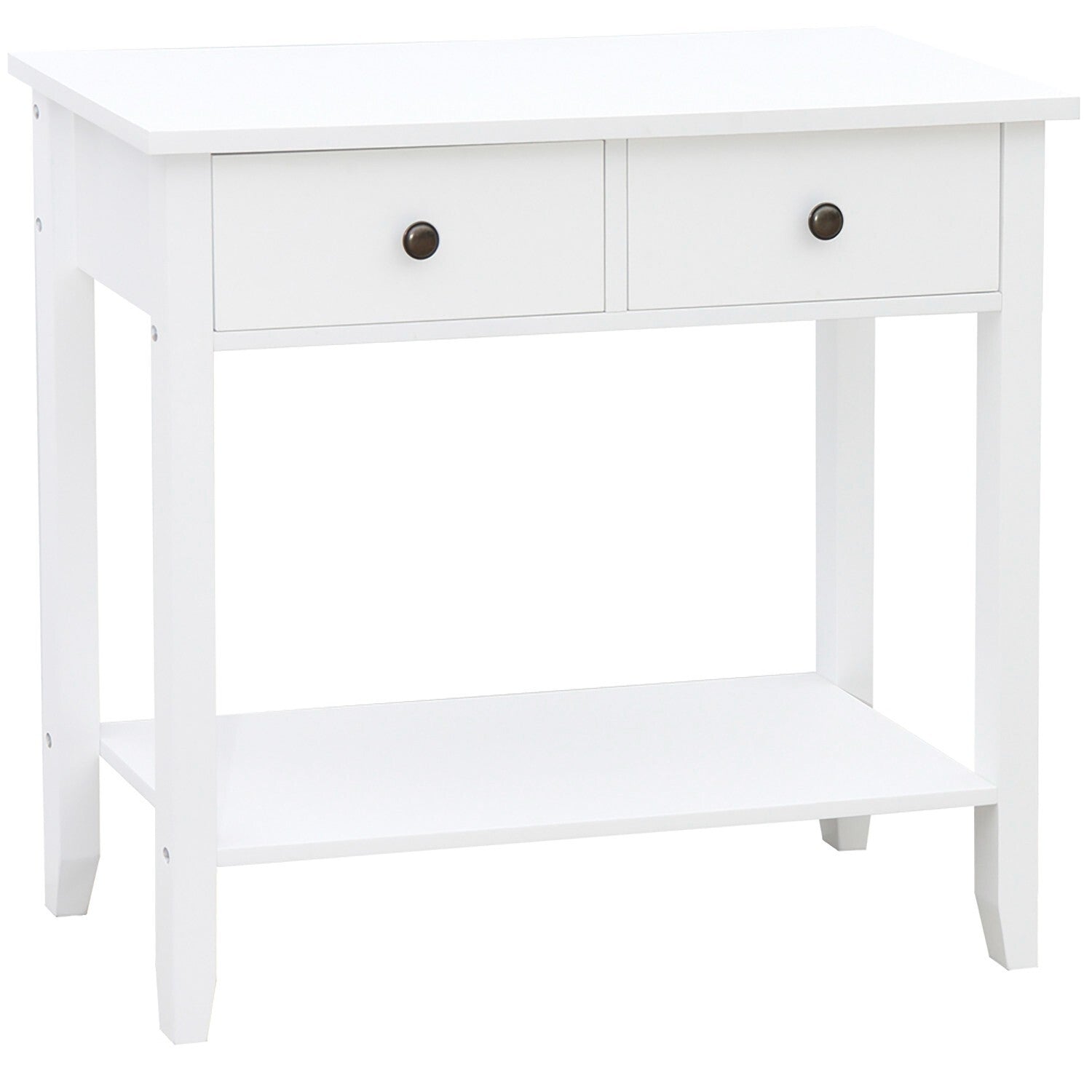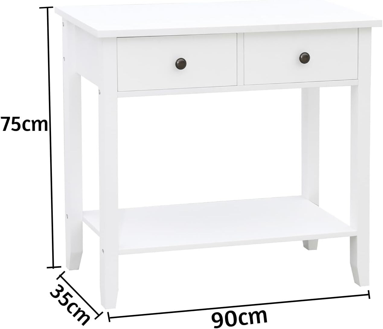 2 Drawer Console Table-White Bedroom Hallway Table with Storage Shelf