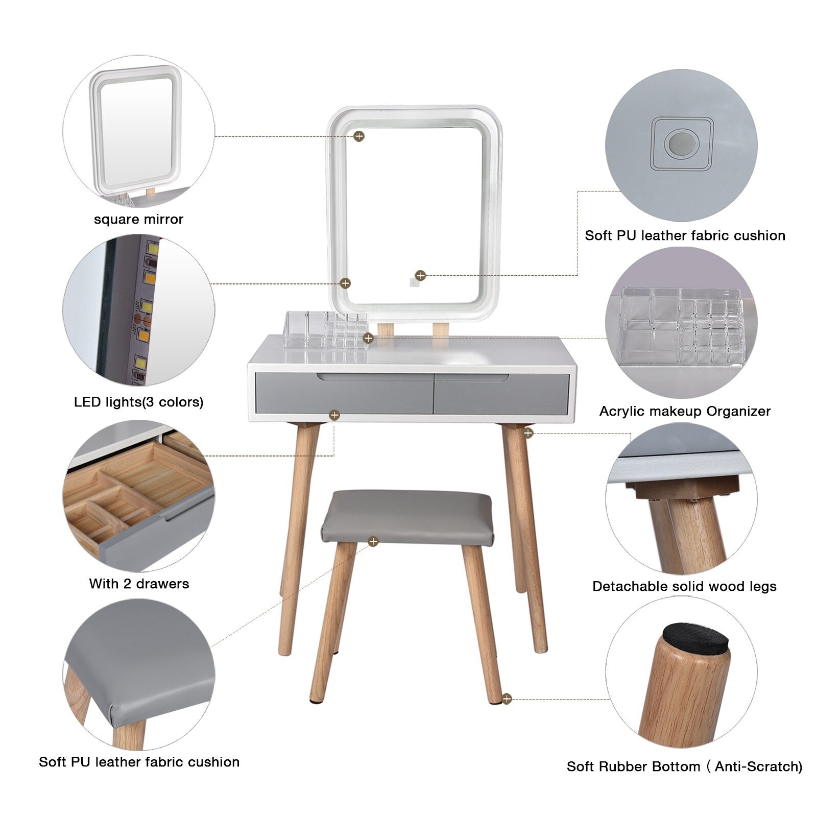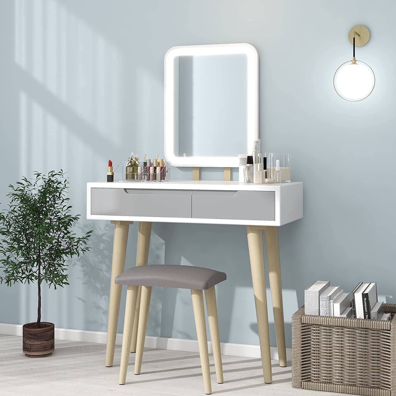 2 Drawer Makeup Dressing Table Stool Set Dimmable LED Lighted Mirror Vanity Set