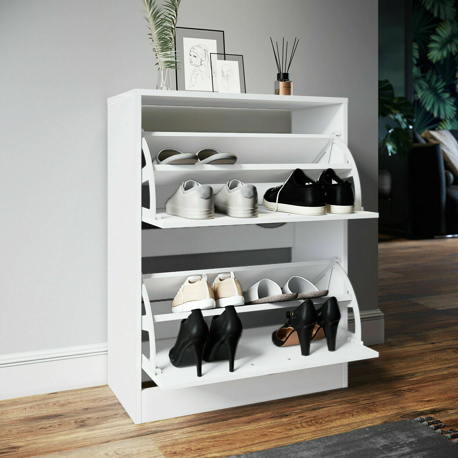 2 Drawer Shoe Cabinet Footwear Rack Storage Wooden Cupboard Unit White