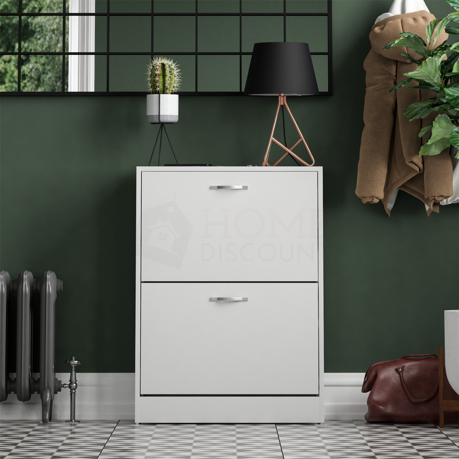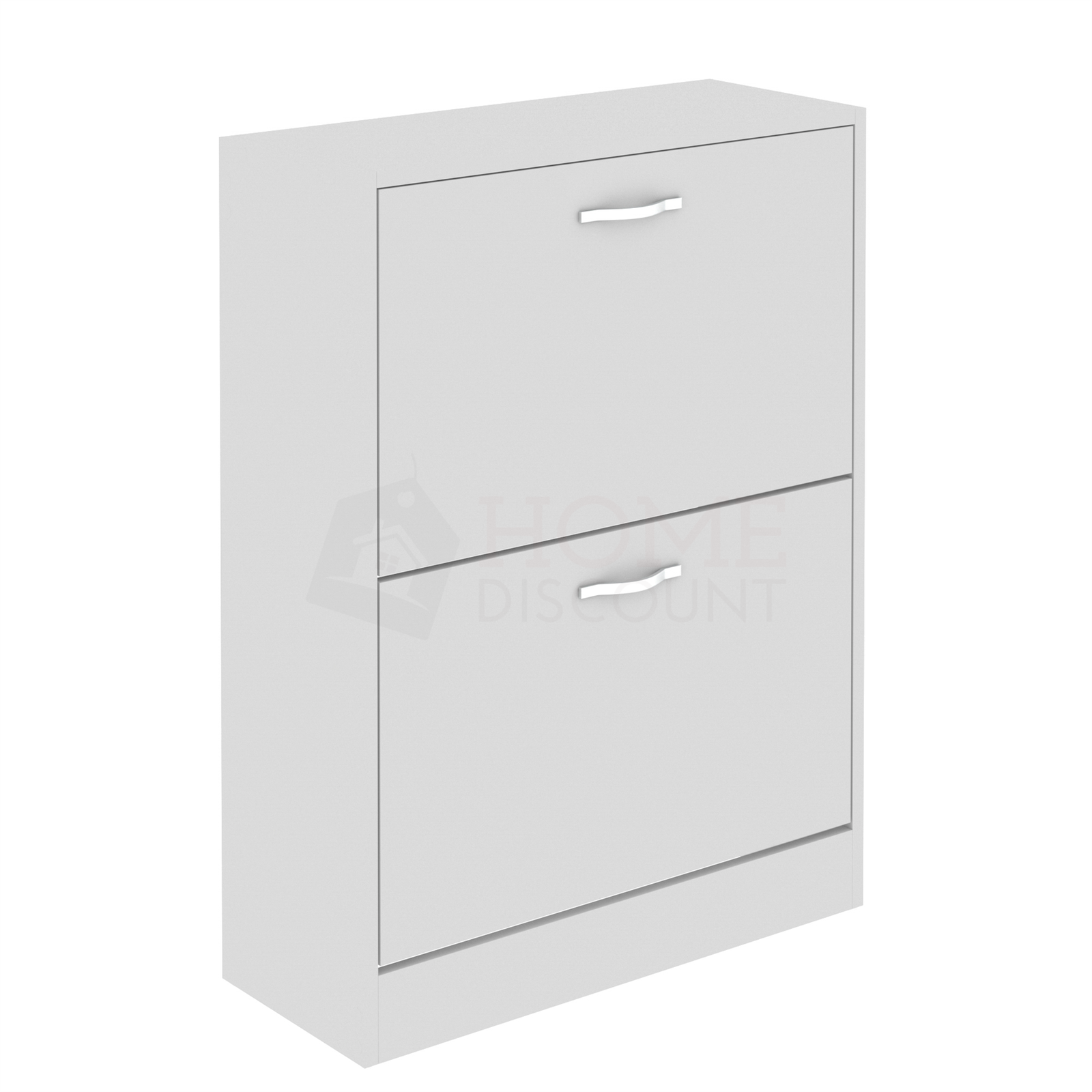 2 Drawer Shoe Cabinet Storage Cupboard Footwear Stand Rack Wooden Unit White New