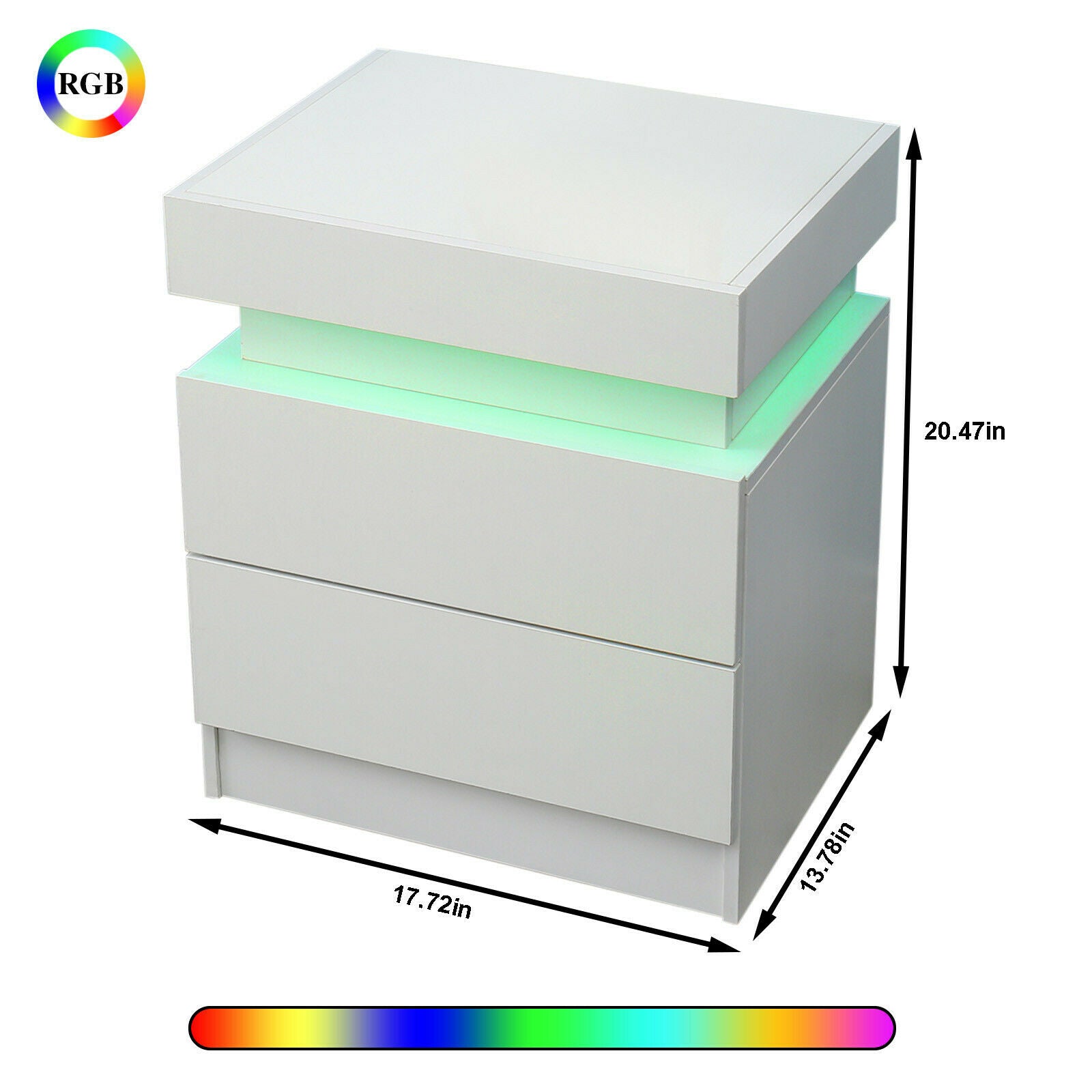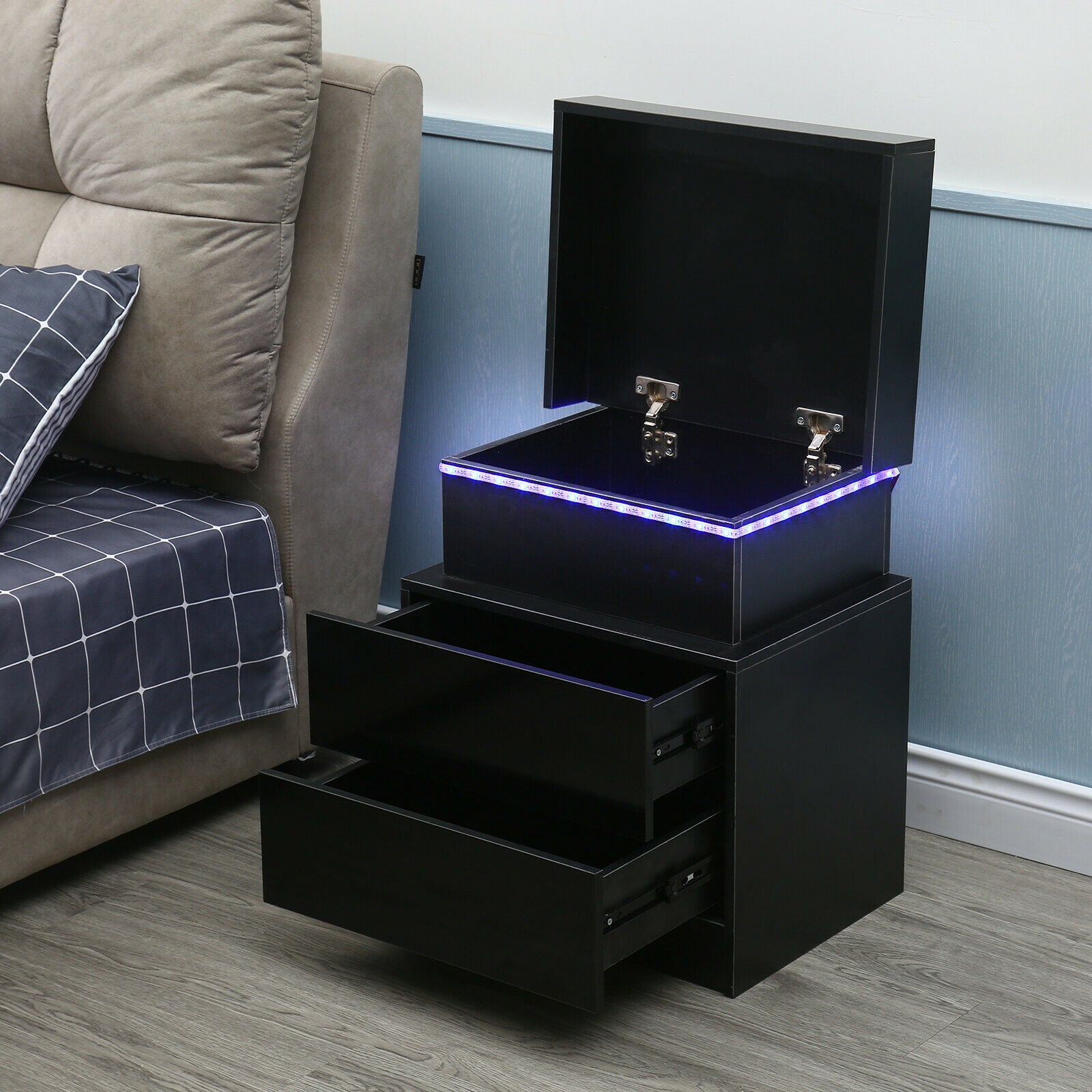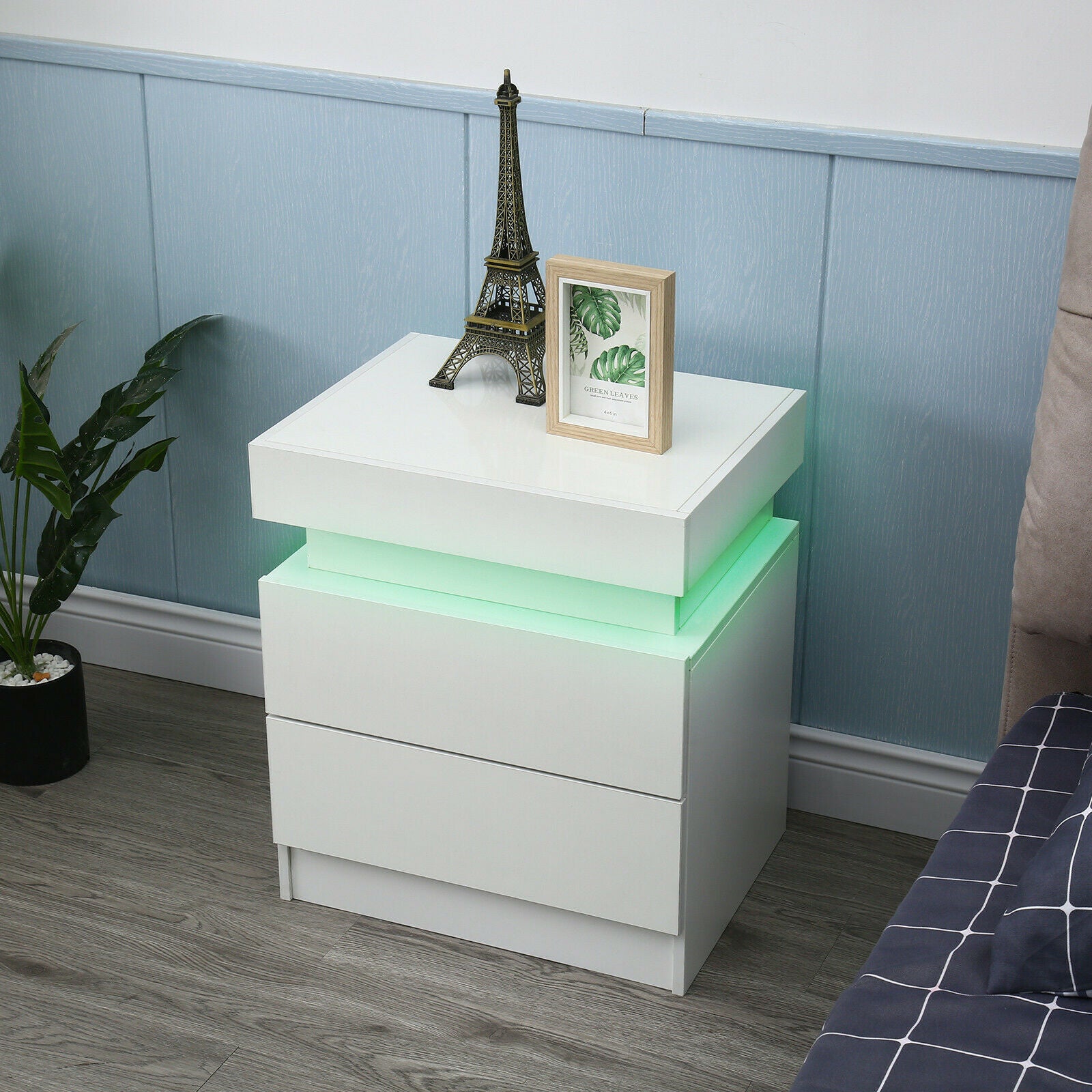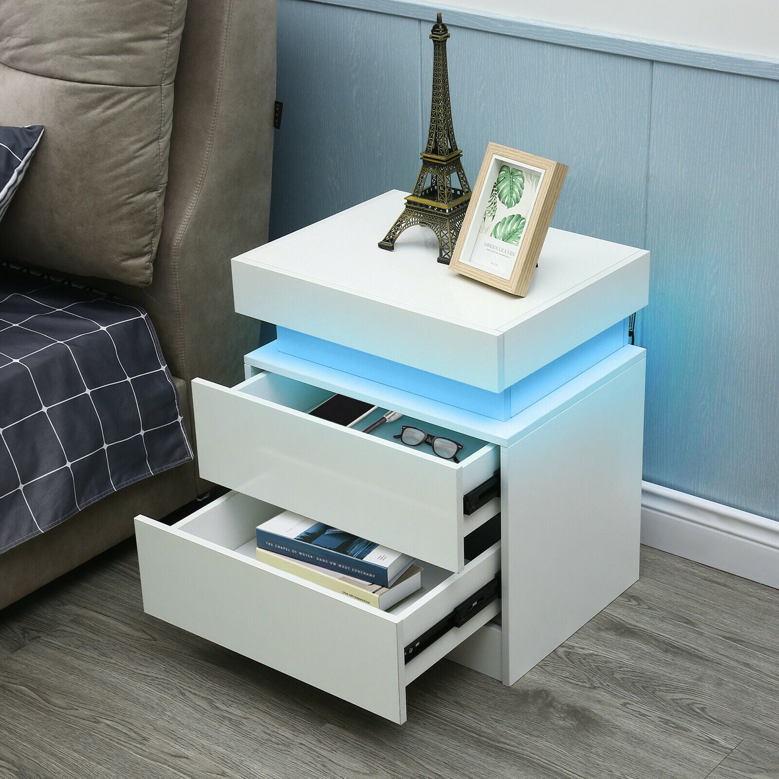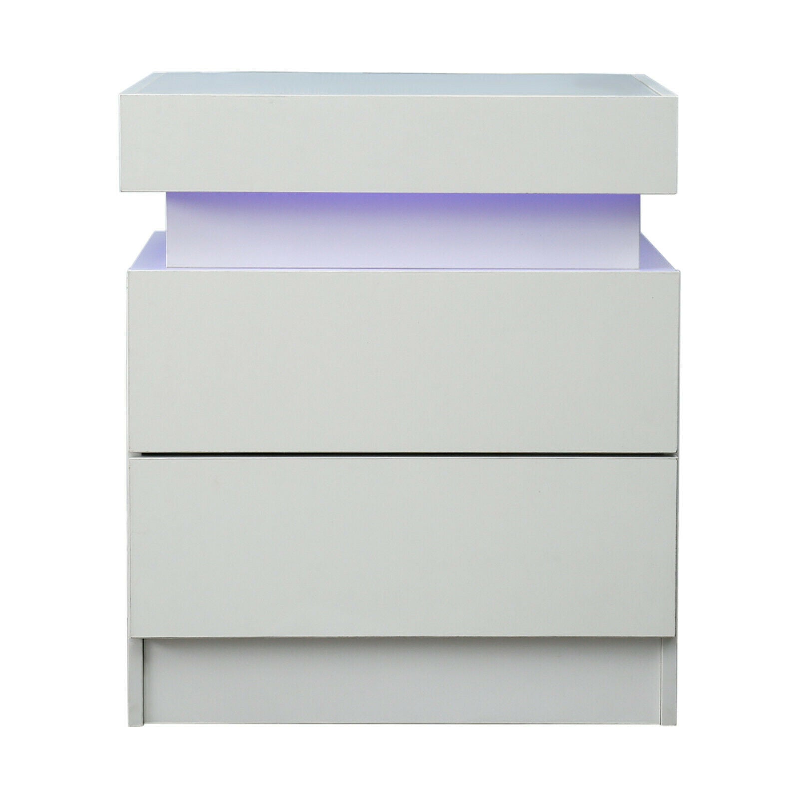 2 Drawers Bedside Table LED Nightstand High Gloss Modern Bedroom Chest Cabinets