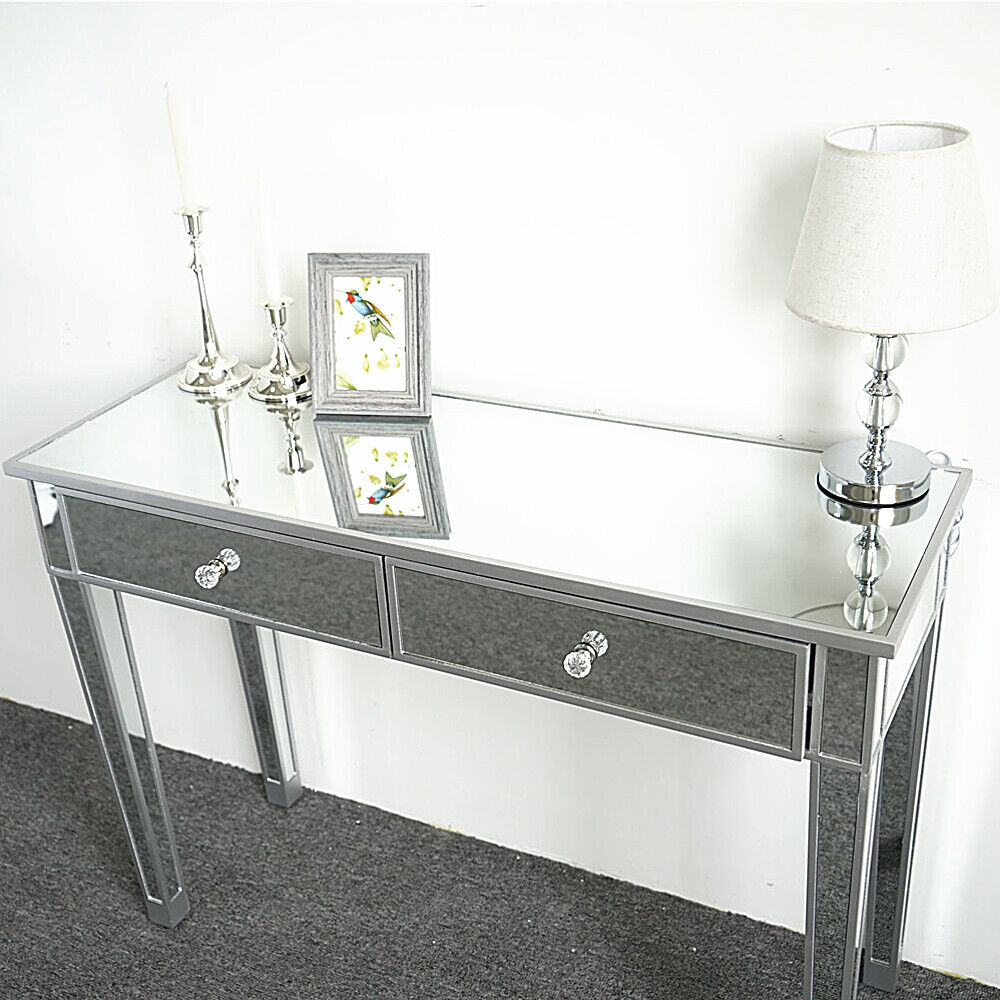 2 Drawers Glass Mirror Dressing Table Luxury Venetian Console Desk Dresser
