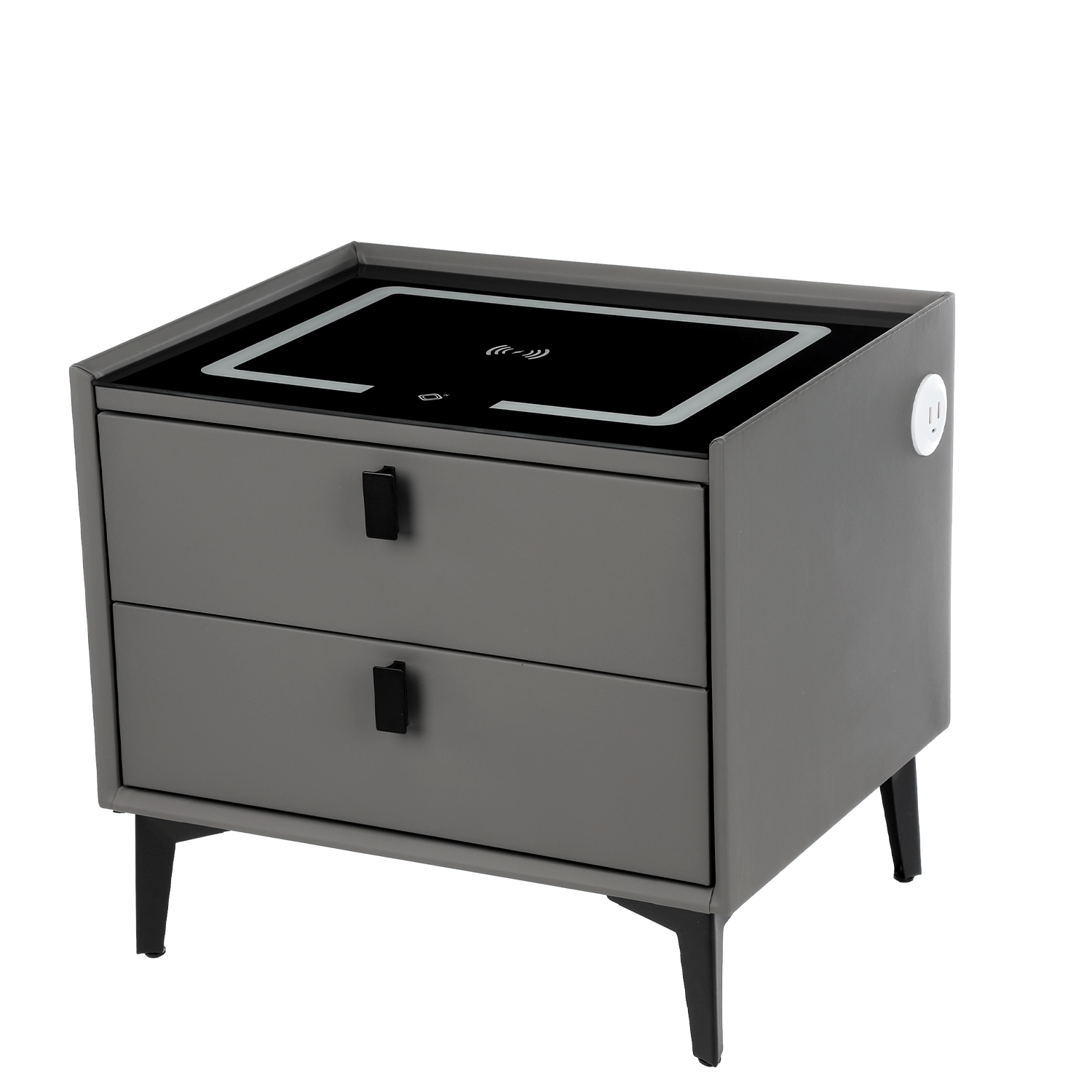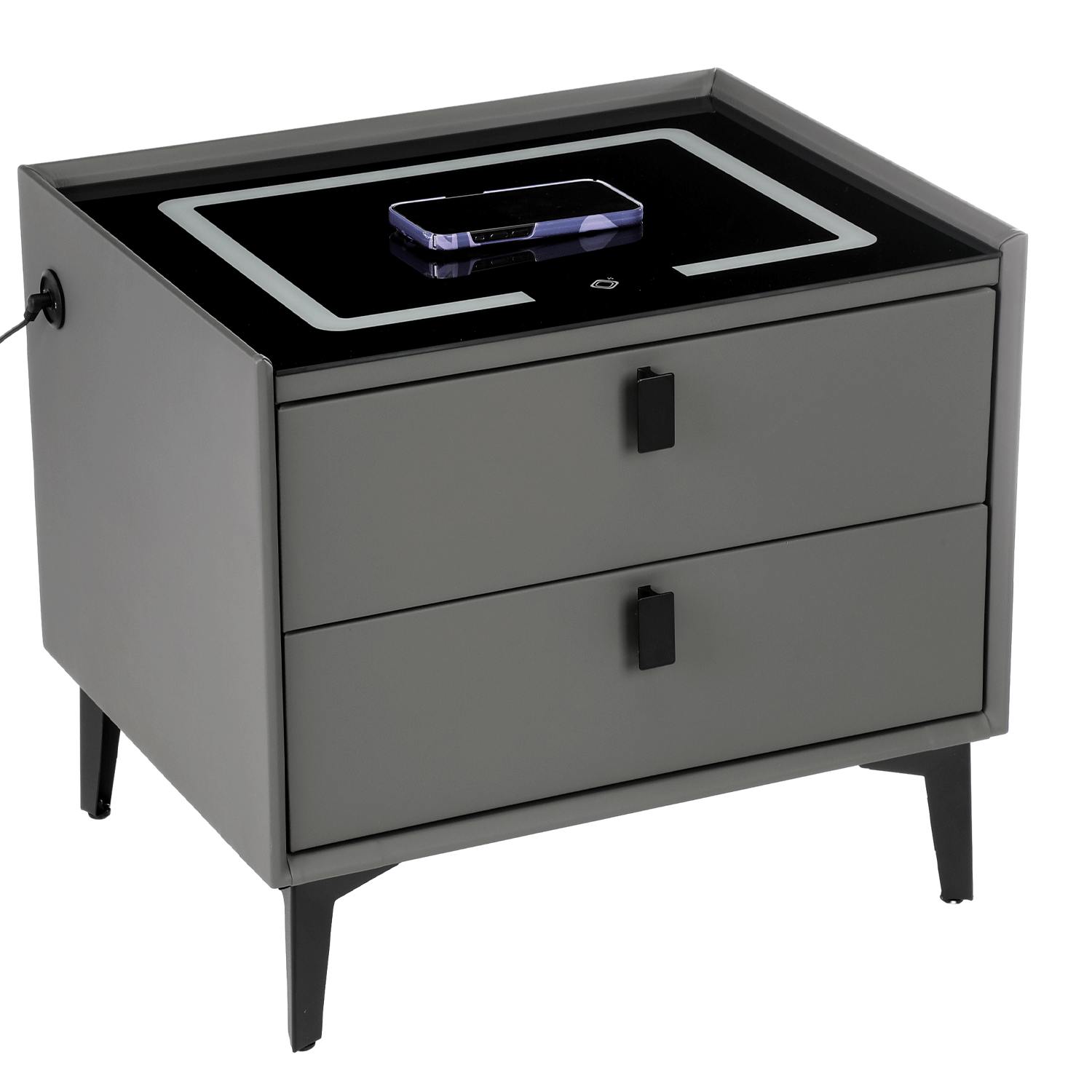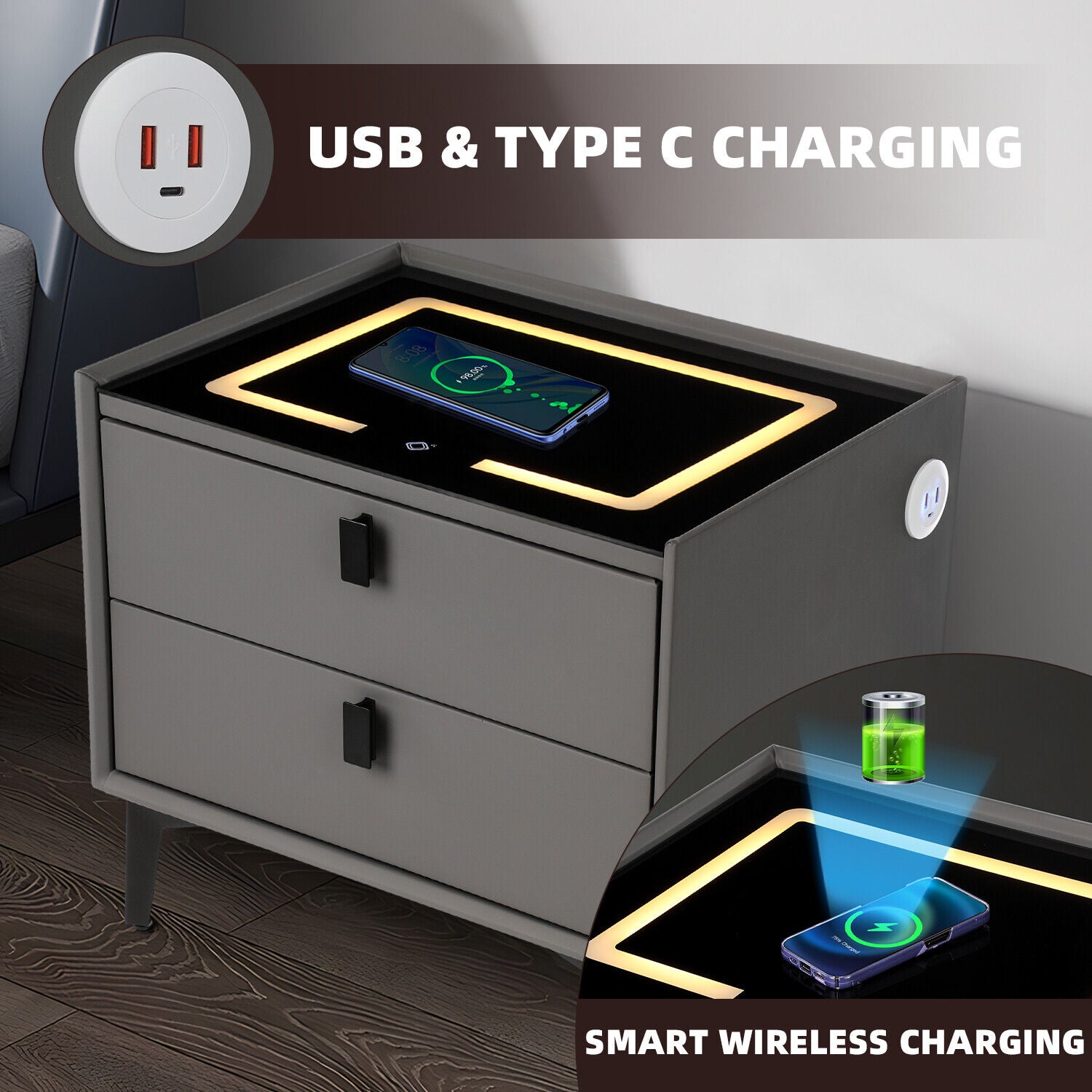 2 Drawers LED Bedside Table Wireless Charging Nightstand Bedside Cabinet Fdklcsb