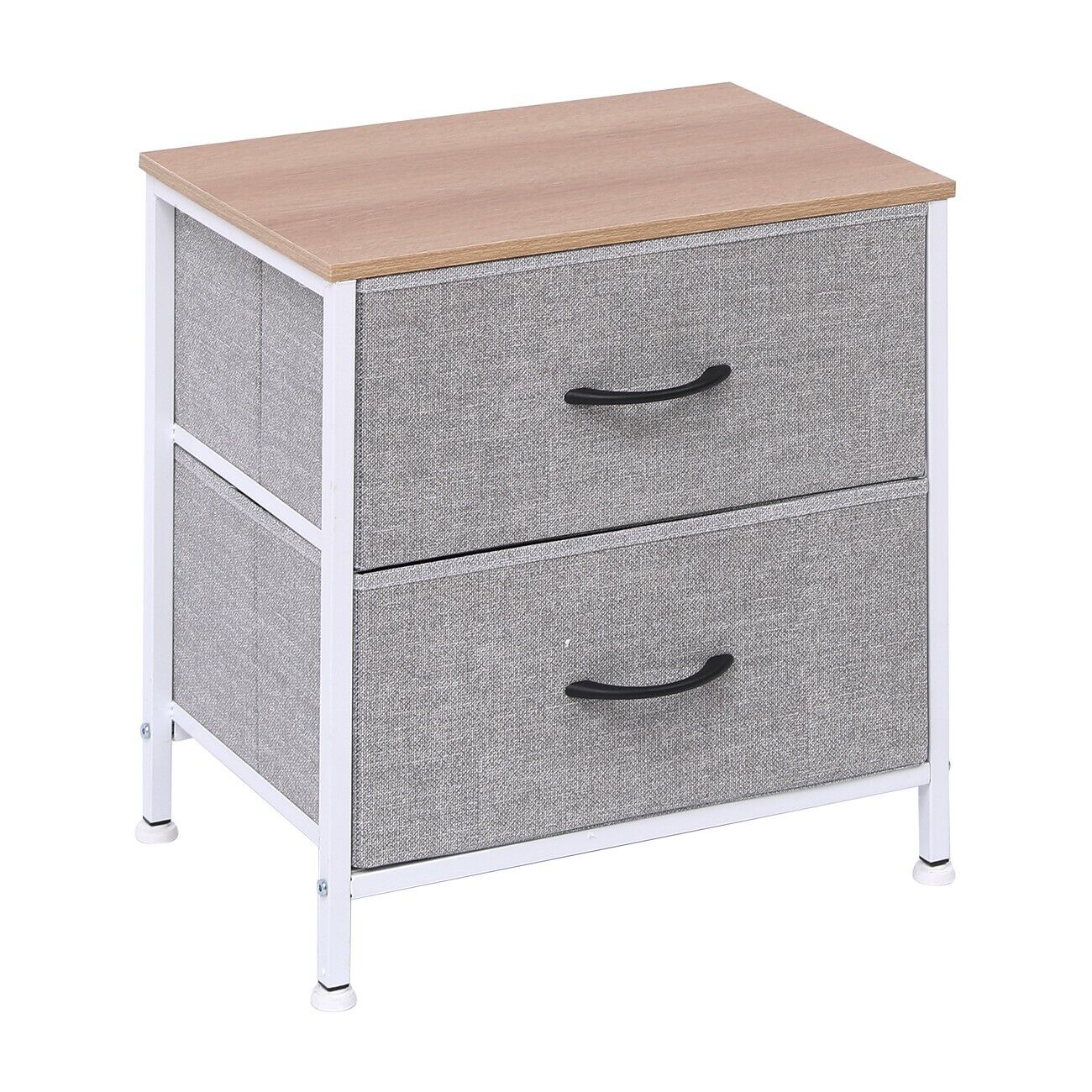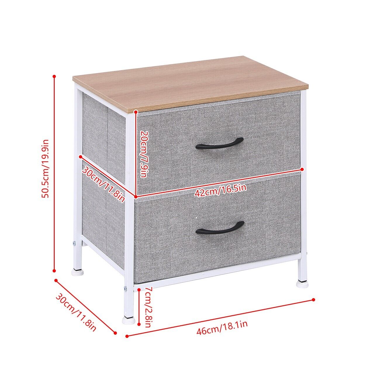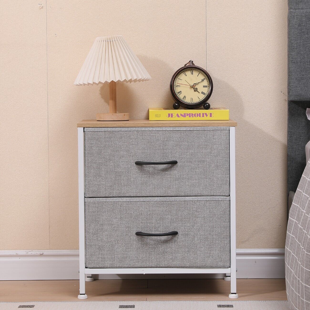 2 Drawers Side Table with Fabric Drawer Wood Tabletop Storage Bedside Table Grey