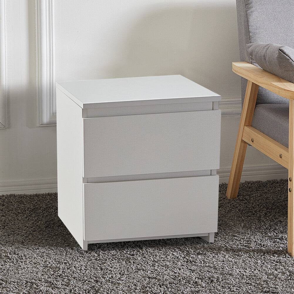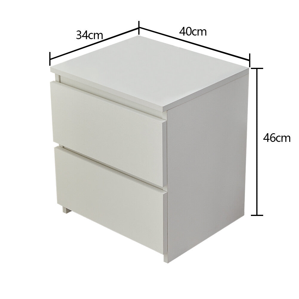 2 Drawers White Bedside Cabinet Storage Nightstand Bedroom Chest Of Drawers