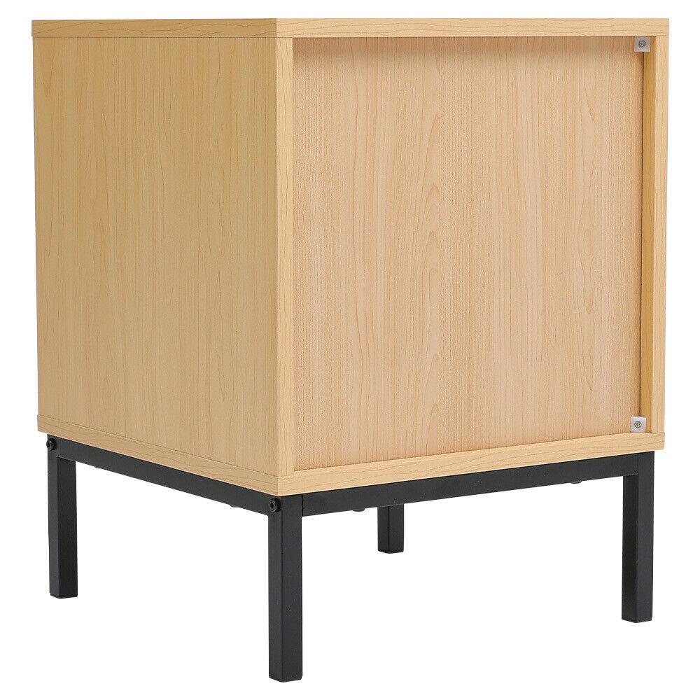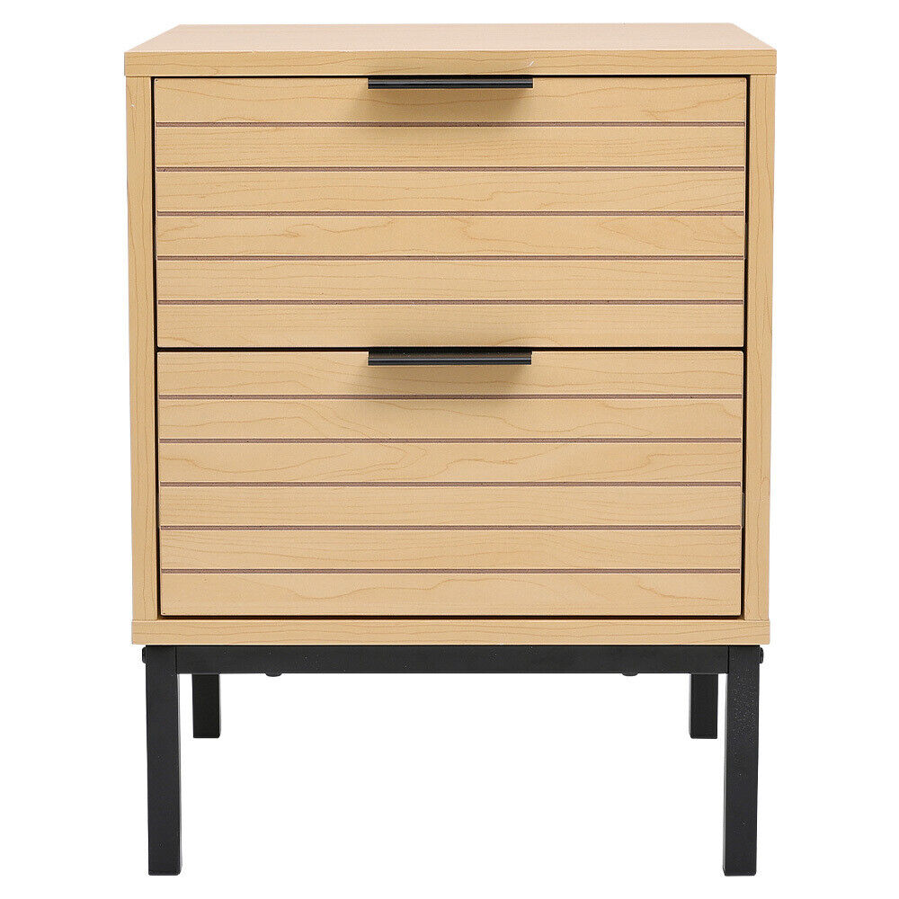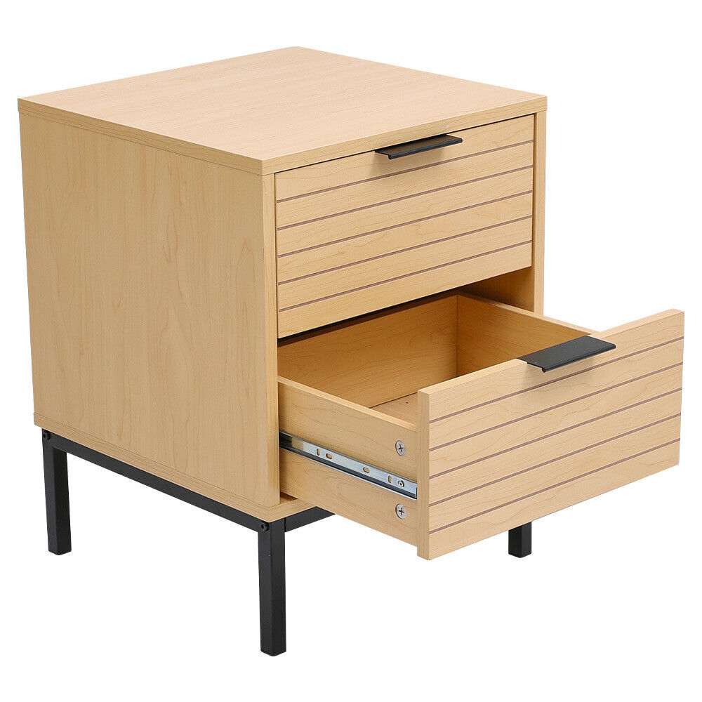 2 Drawers Wooden Bedside Cabinet Bedroom Furniture Storage Nightstand Metal Legs