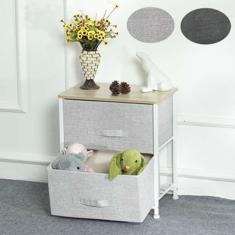2 Fabric Drawers Bedside Table Nightstand Cabinet Home Bedroom Storage 2 Colors