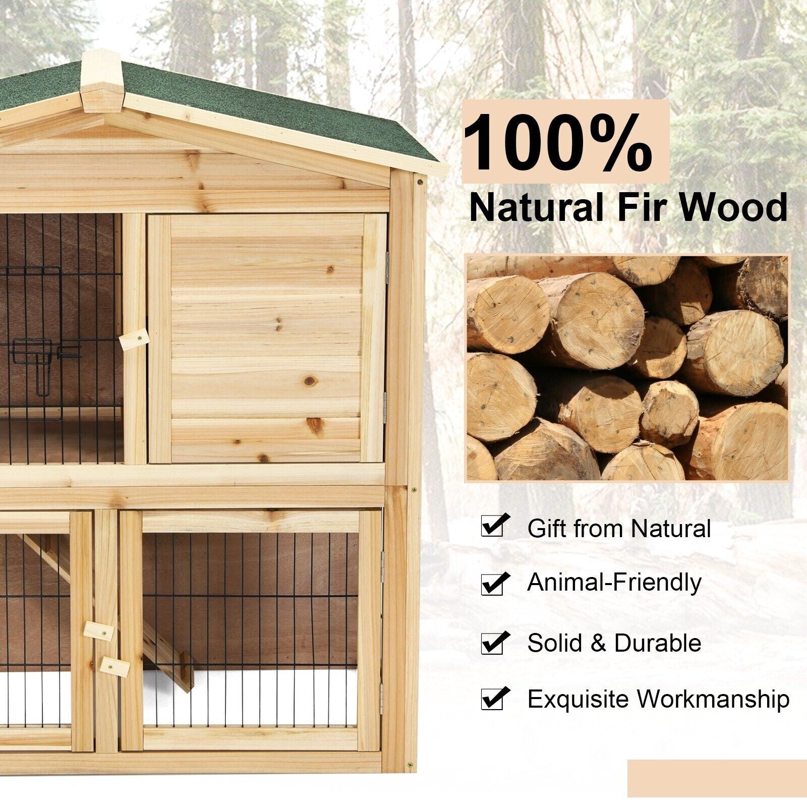 2 Floors Wood Chicken Coop Large Bunny Rabbit Cage Indoor Outdoor Pet House Ramp