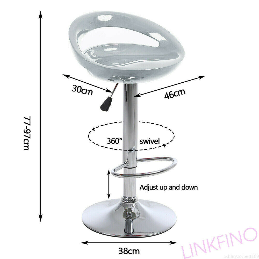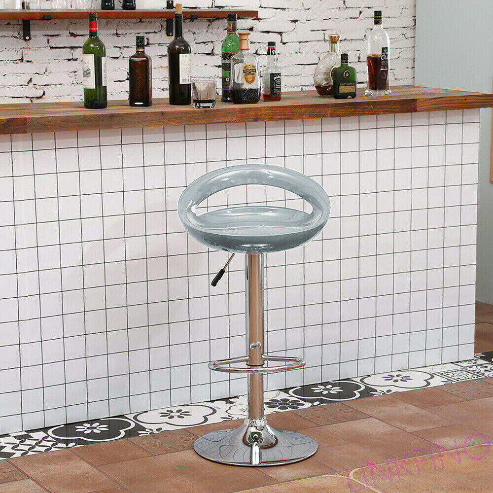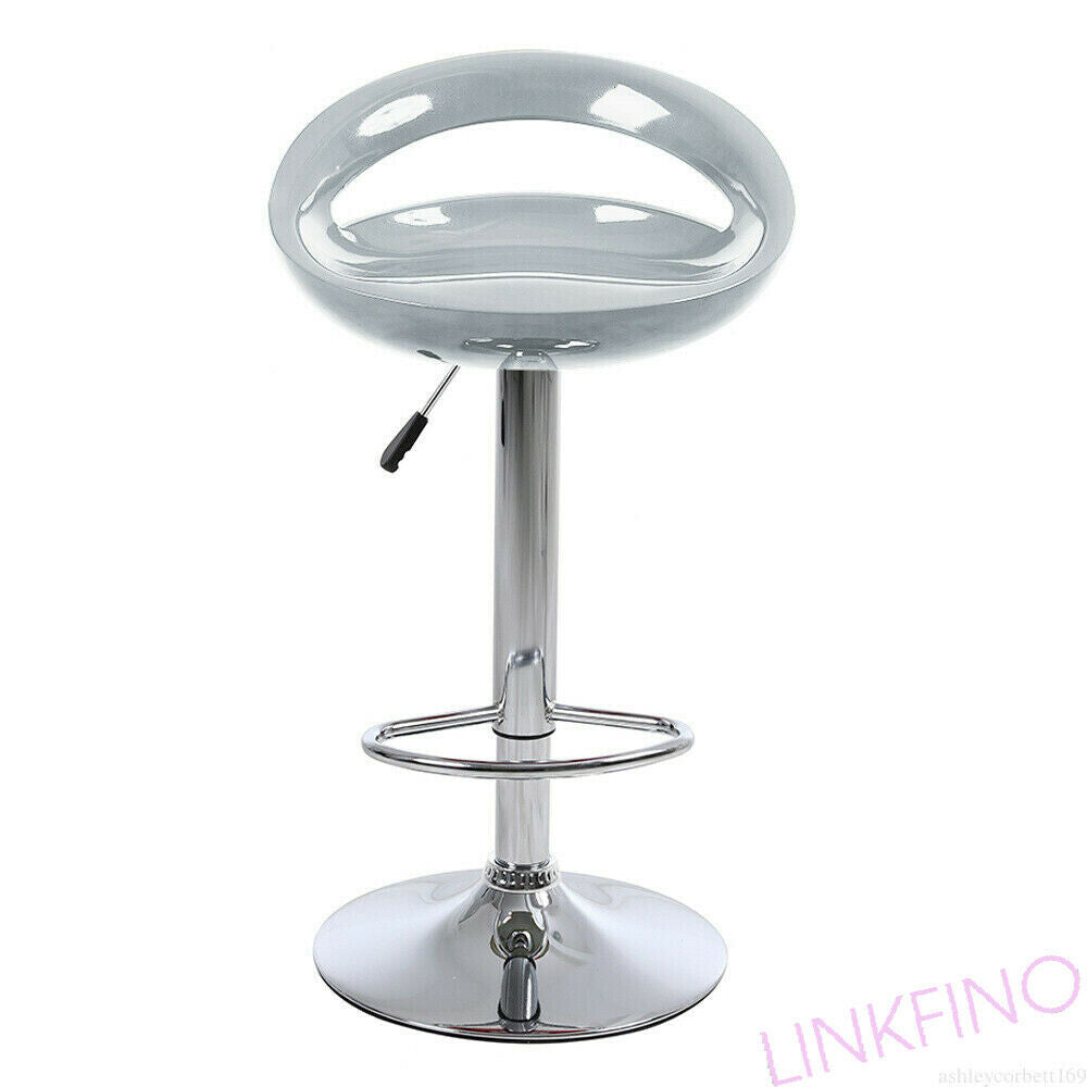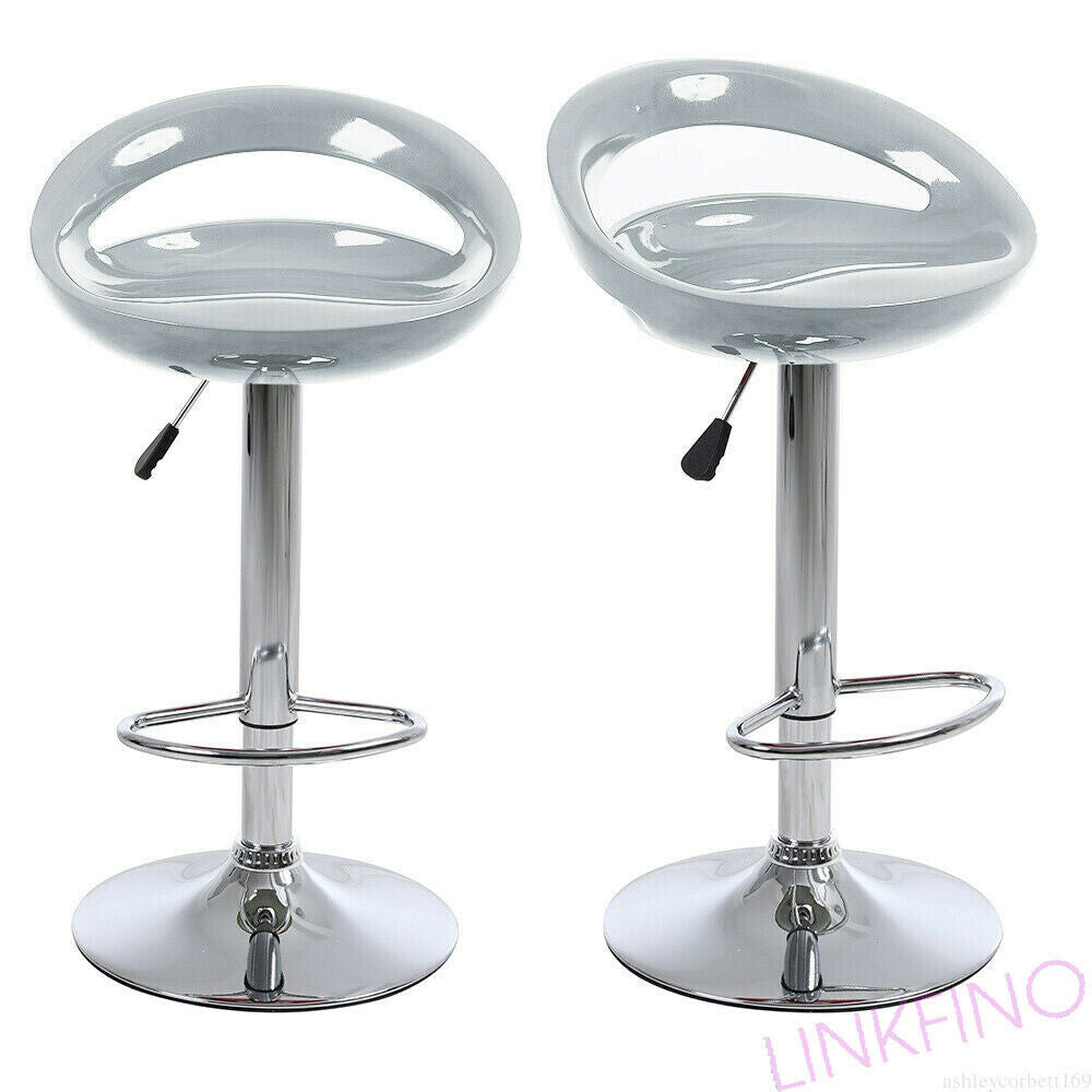 2* Grey Bar Stools Curved Glossy ABS Seat Gas Lift Swivel Chrome Leg Pub Club