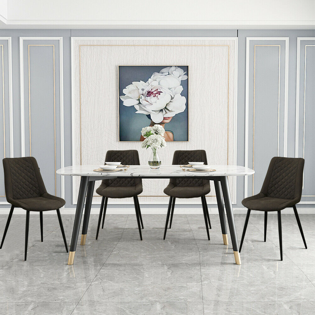 2 × Grey / Brown Dining Chairs Faux Suede Fabric with Metal Legs Home Kitchen