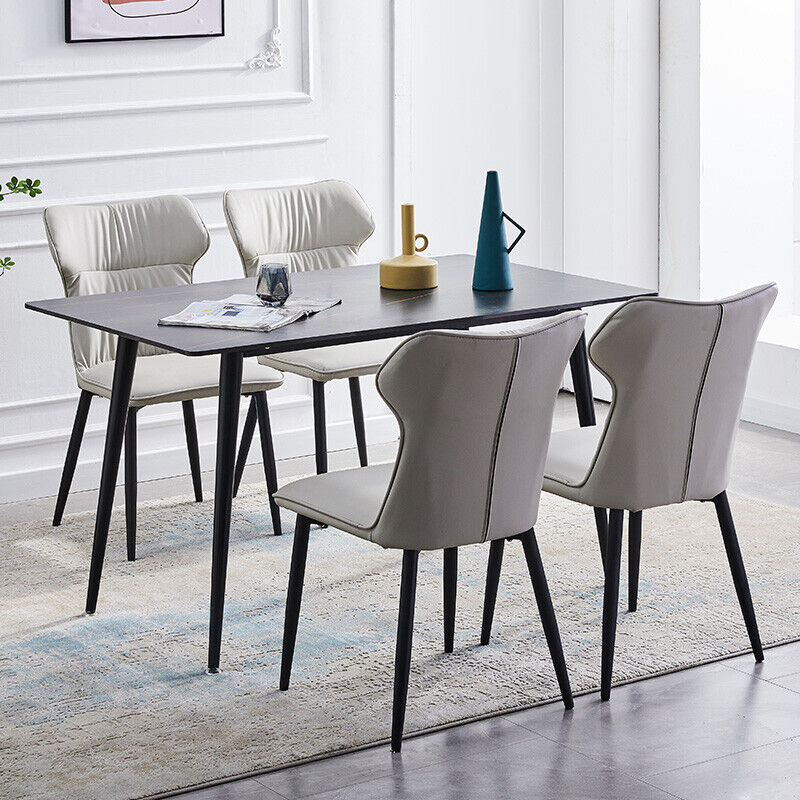 2 grey Faux Leather Dining Chairs High Back Kitchen Dining Room Chairs Modern