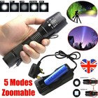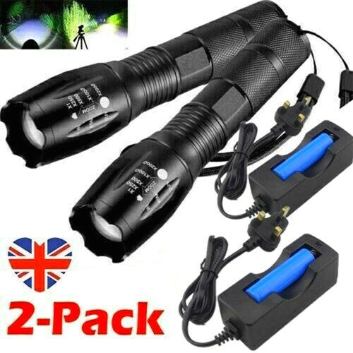 2 High Power Adjustable Focus LED Flashlight 5 Modes Lamp Battery Charger