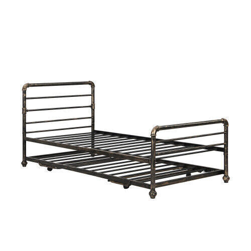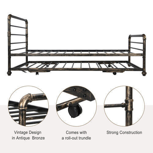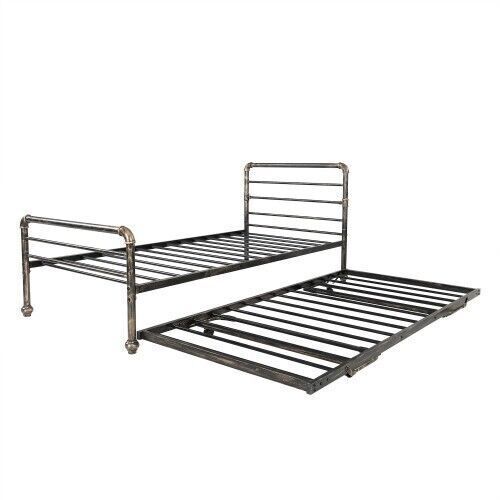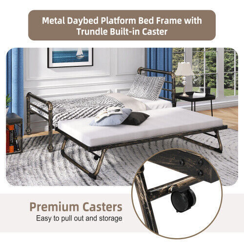 2 in 1 3FT Single Steel Day Bed Guest Trundle Bed Bed Frame Solid Metal Sofa Bed