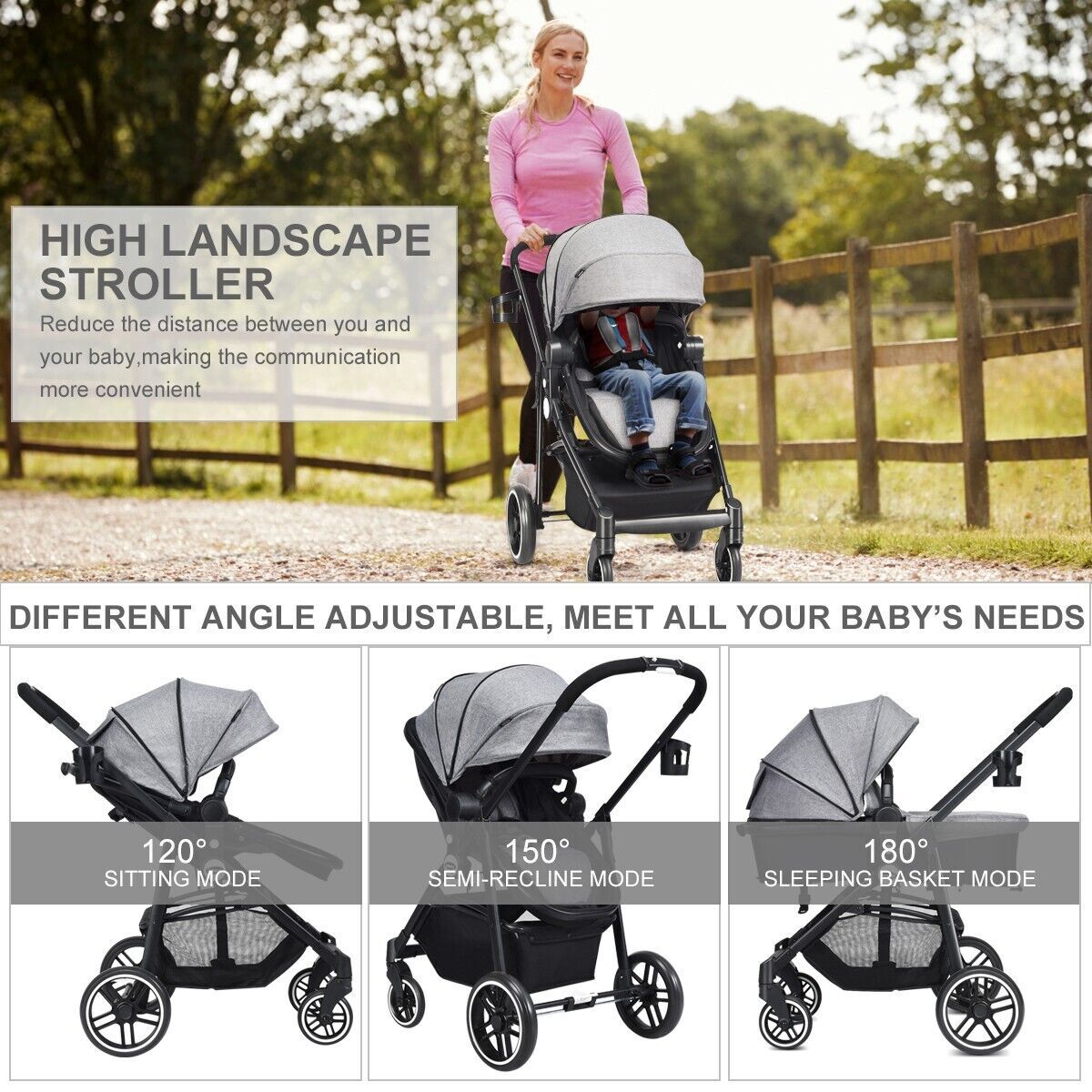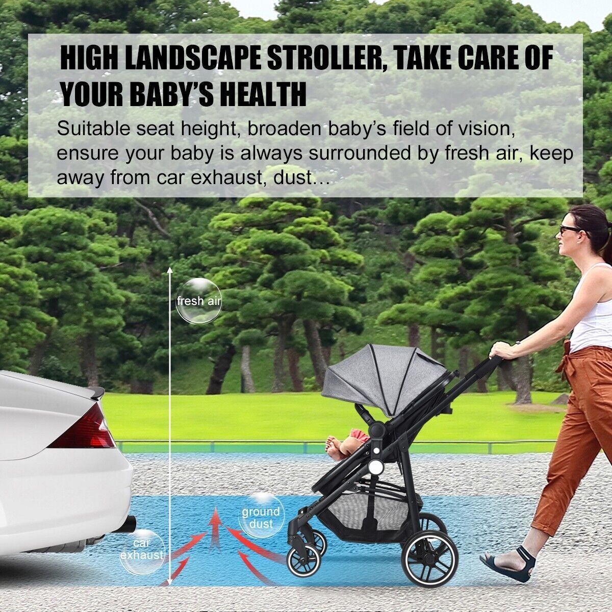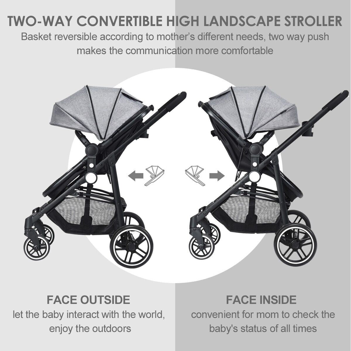 2 in 1 Baby High Landscape Stroller Foldable Toddler Reversible Stroller Grey
