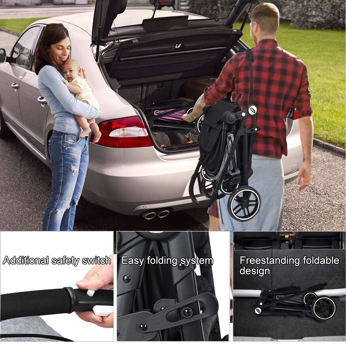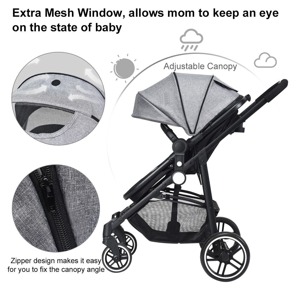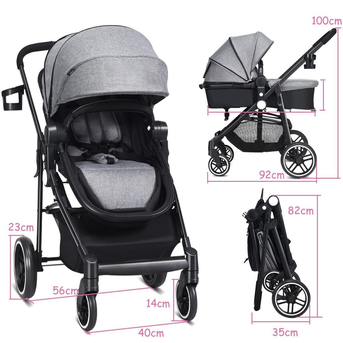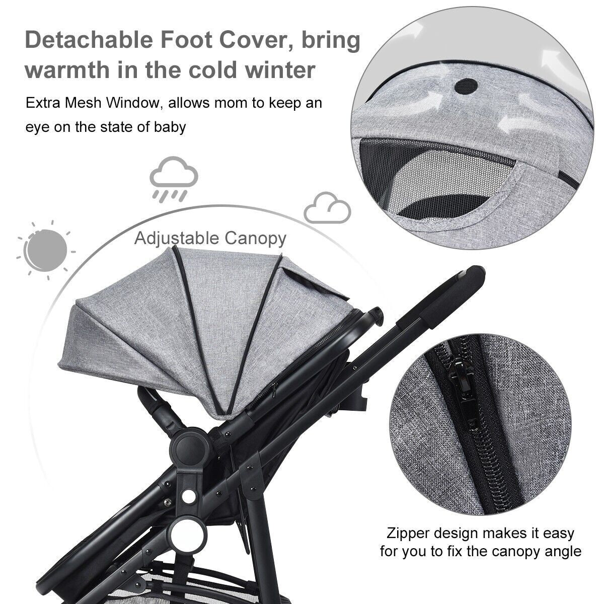 2 in 1 Baby High Landscape Stroller Foldable Toddler Reversible Stroller Grey