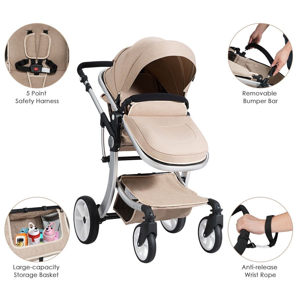 2 in 1 Baby Stroller High Landscape Convertible Bassinet Pram Foldable Pushchair