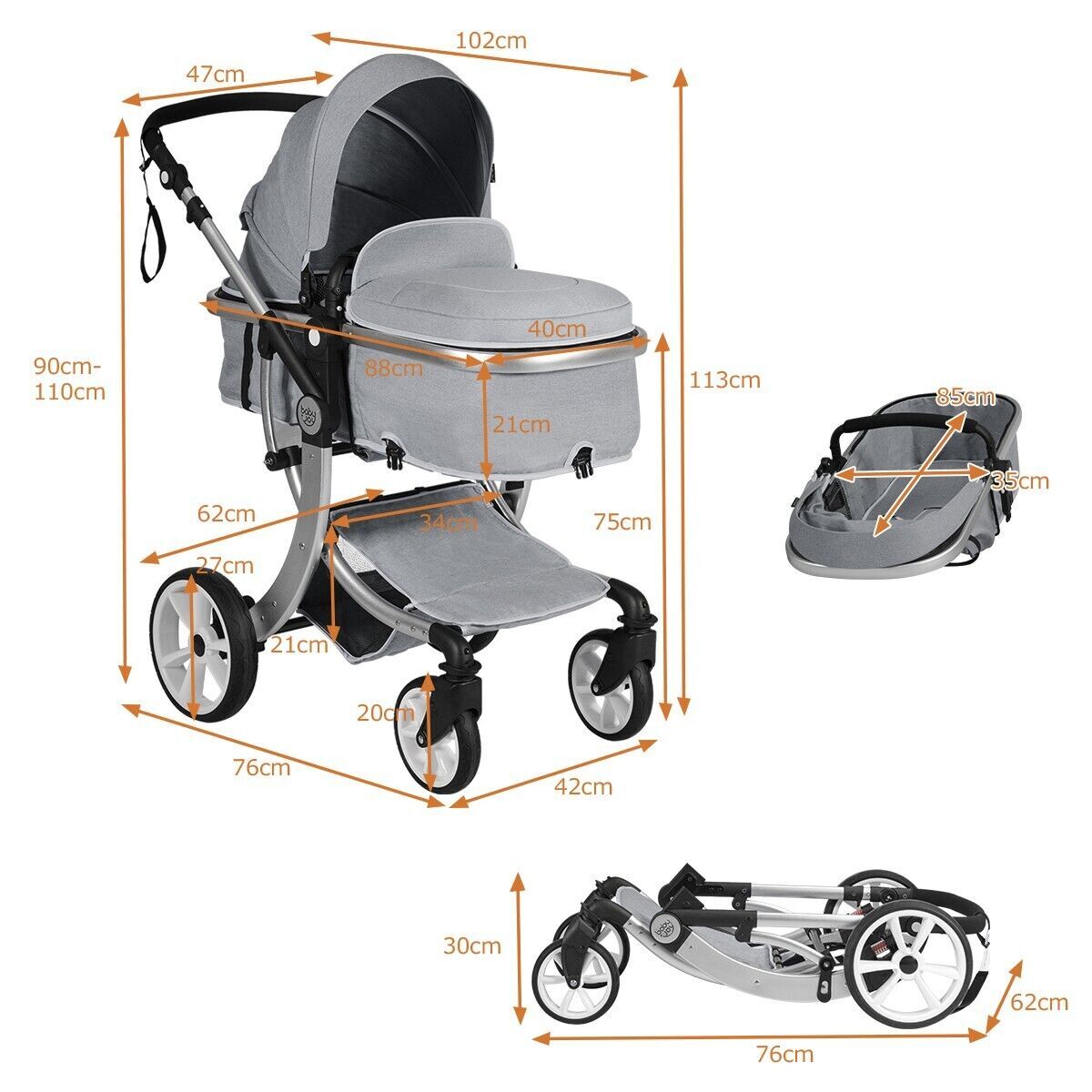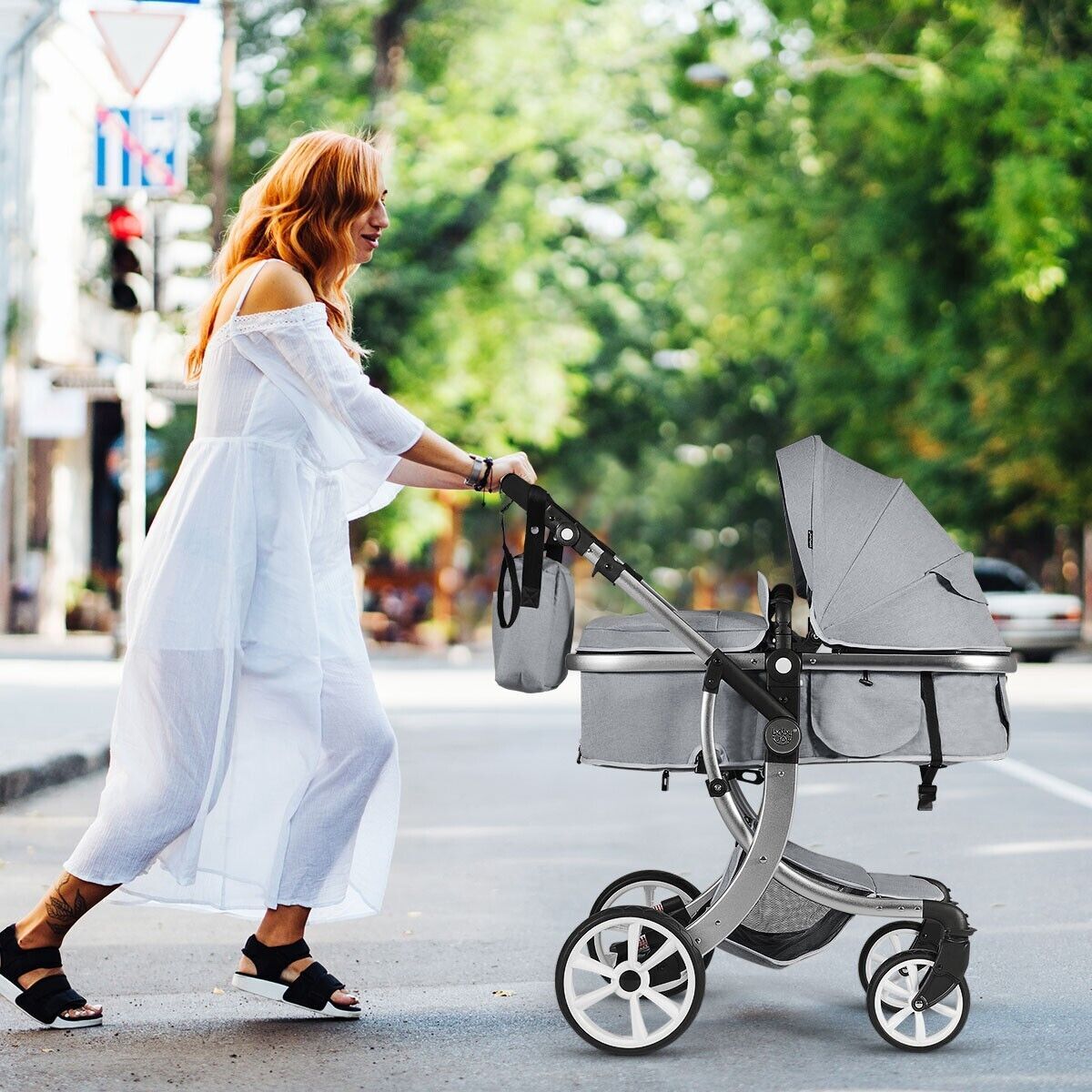 2 in 1 Baby Stroller High Landscape Convertible Bassinet Pram Foldable Pushchair