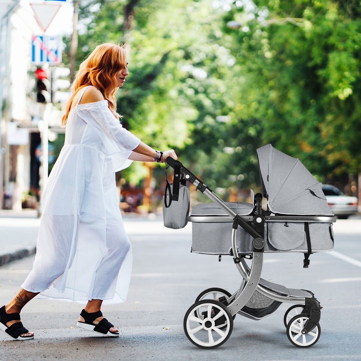 2 in 1 Baby Stroller Pushchair Convertible Reversible Bassinet Pram W/Rain Cover