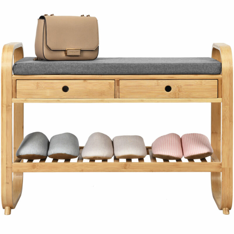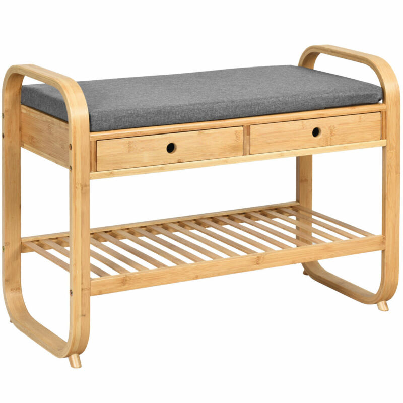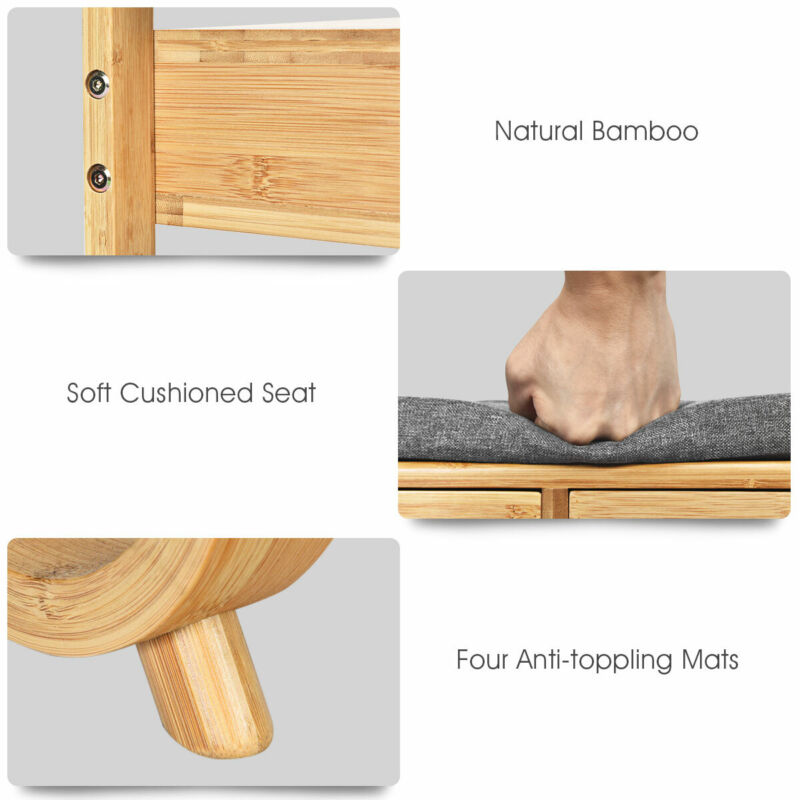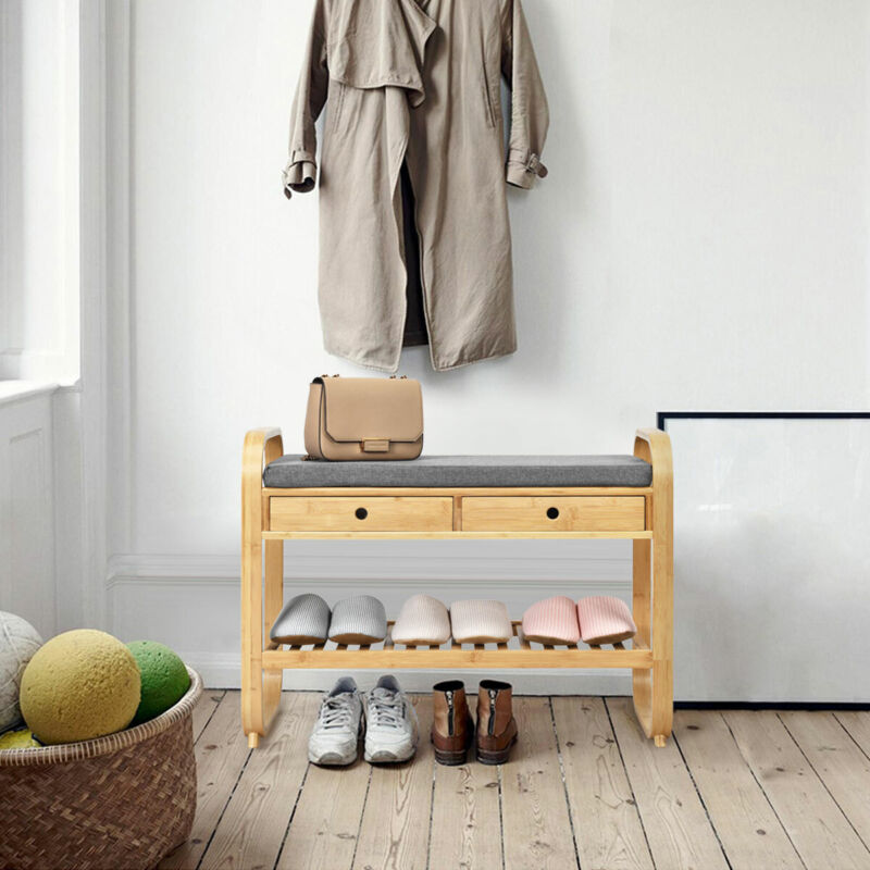 2 IN 1 Bamboo Shoe Rack Stool Seater Entryway Cushioned Bench Storage Organiser