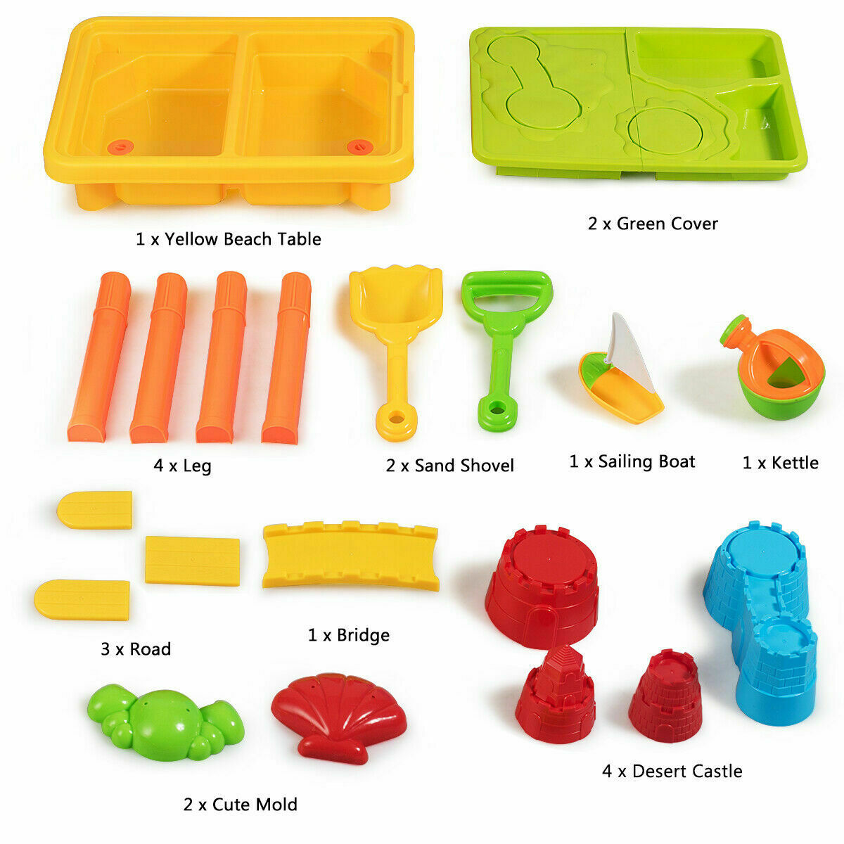2 IN 1 Beach Toy Set Children Kids Sand and Water Table Set Garden Sandpit Play
