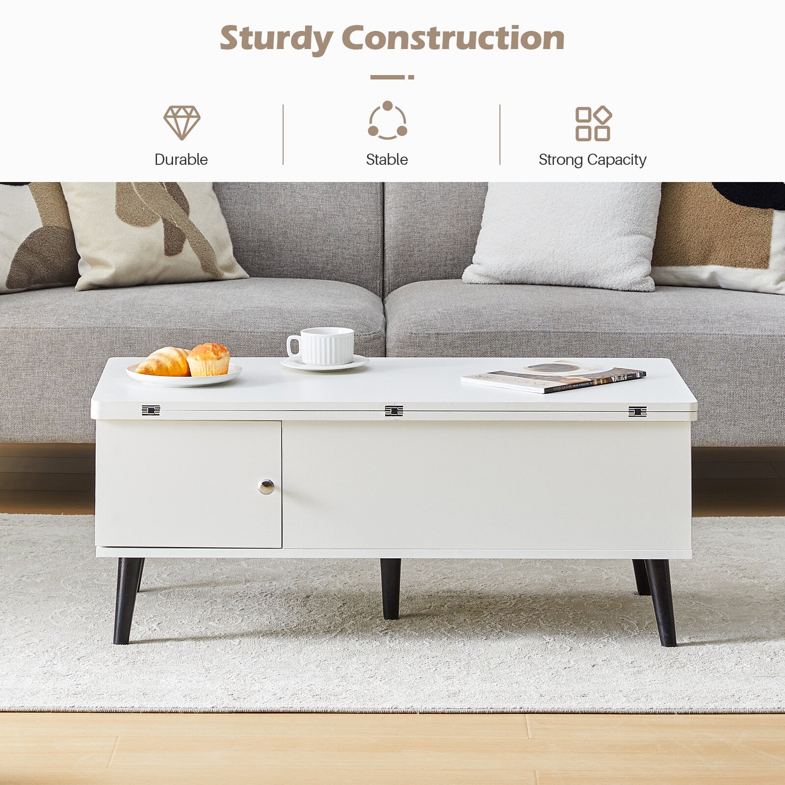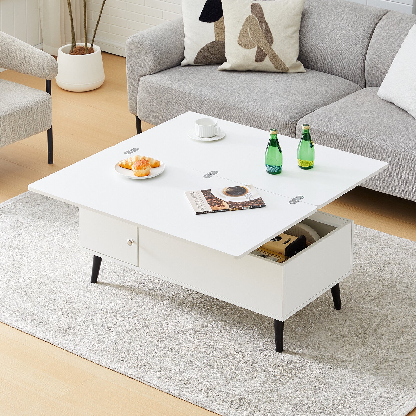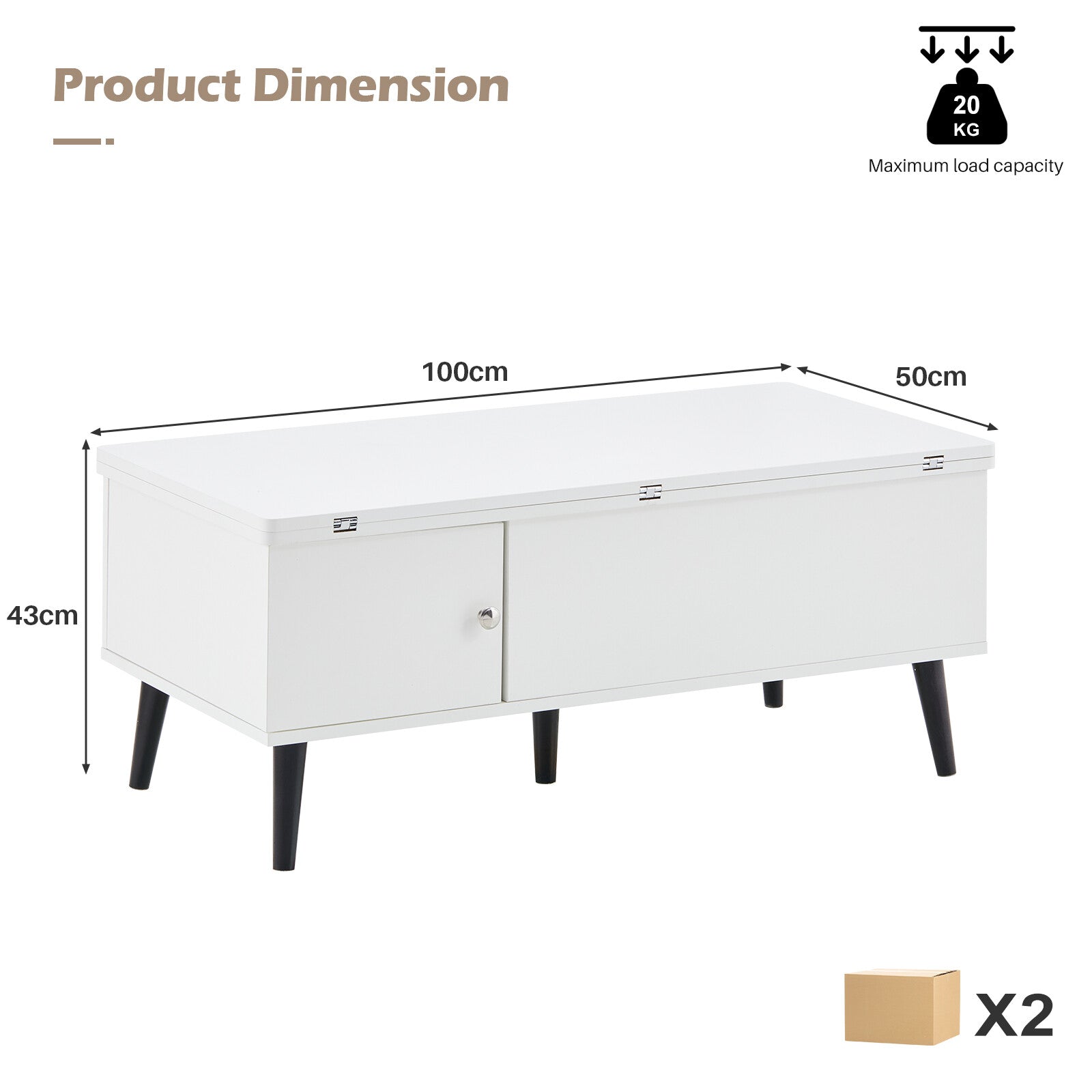 2-in-1 Coffee Table With Lift Up Top and 2 Large Storage Cabinet White Wooden