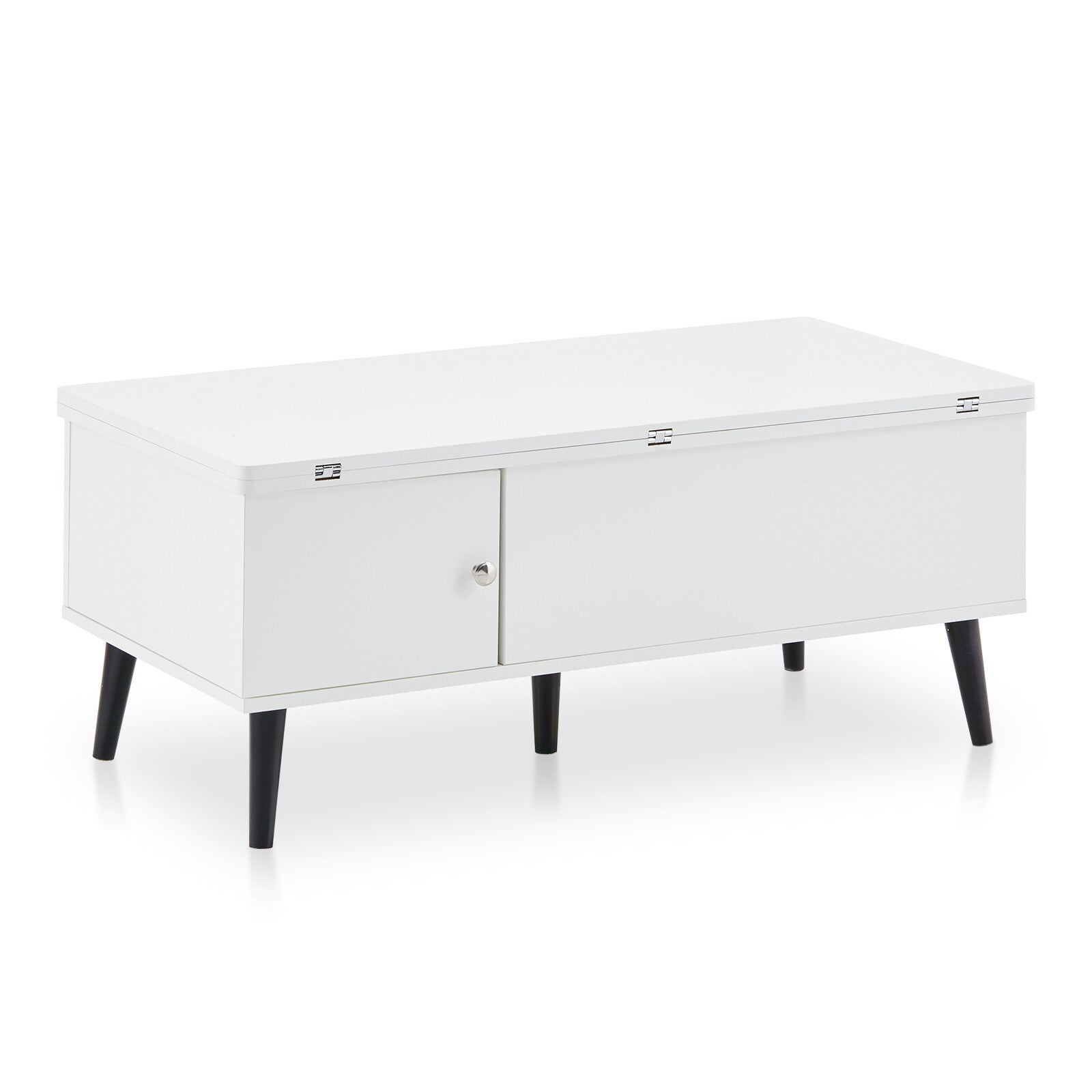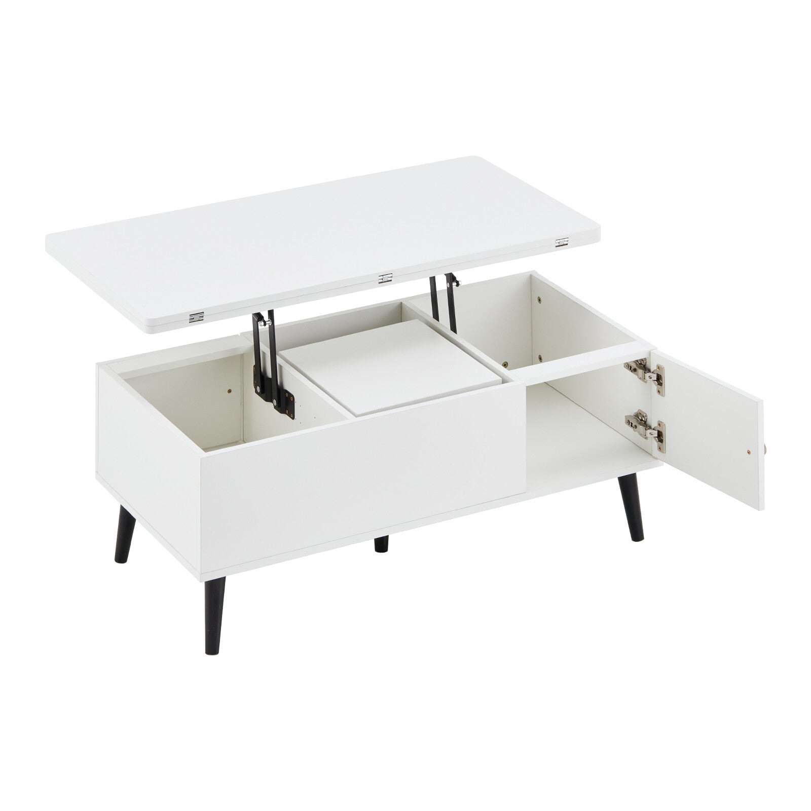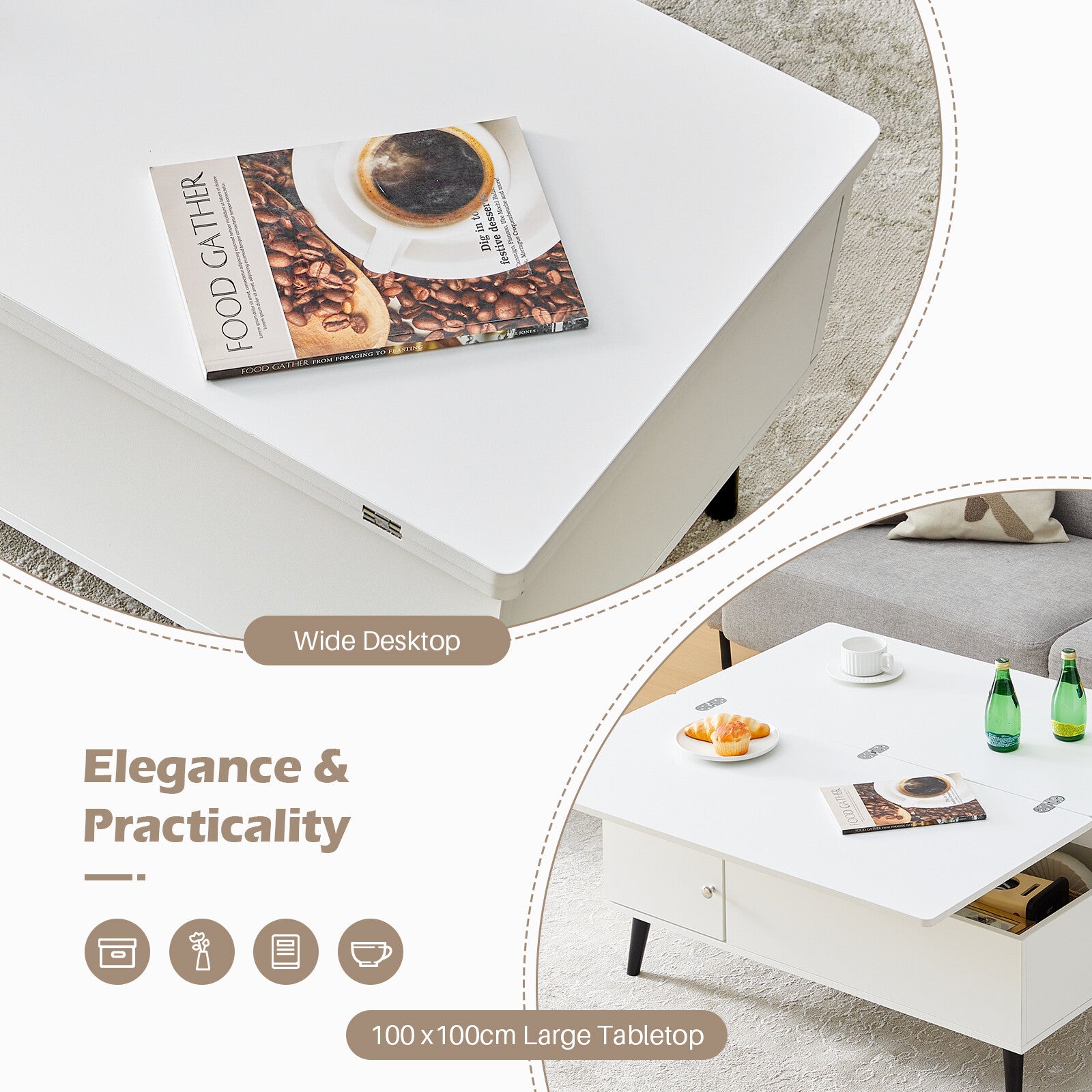 2-in-1 Coffee Table With Lift Up Top and 2 Large Storage Cabinet White Wooden