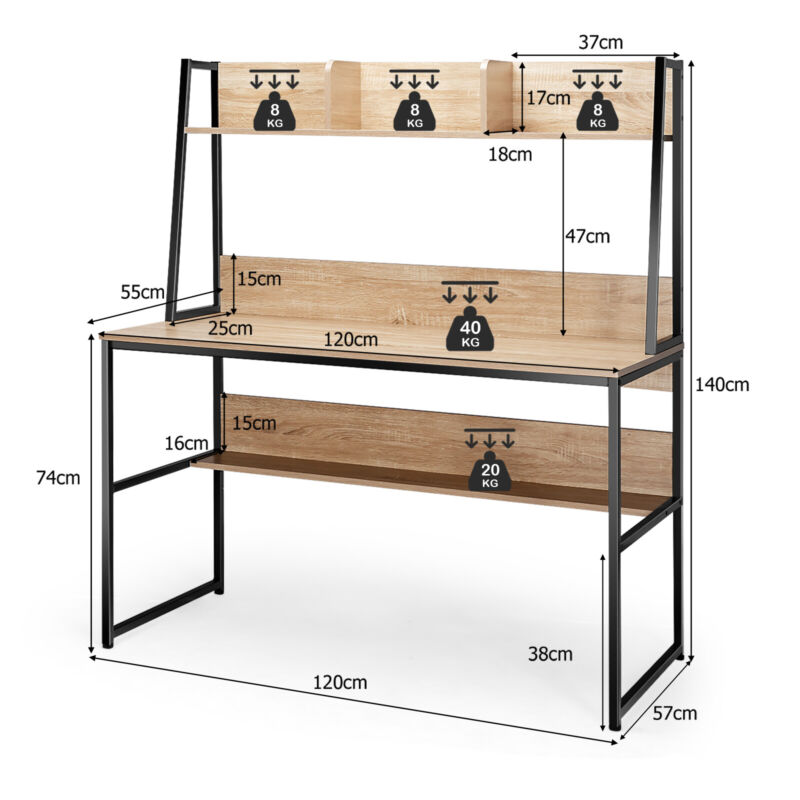 2 in 1 Computer Desk PC Laptop Table Writing Study Workstation Storage Bookcases