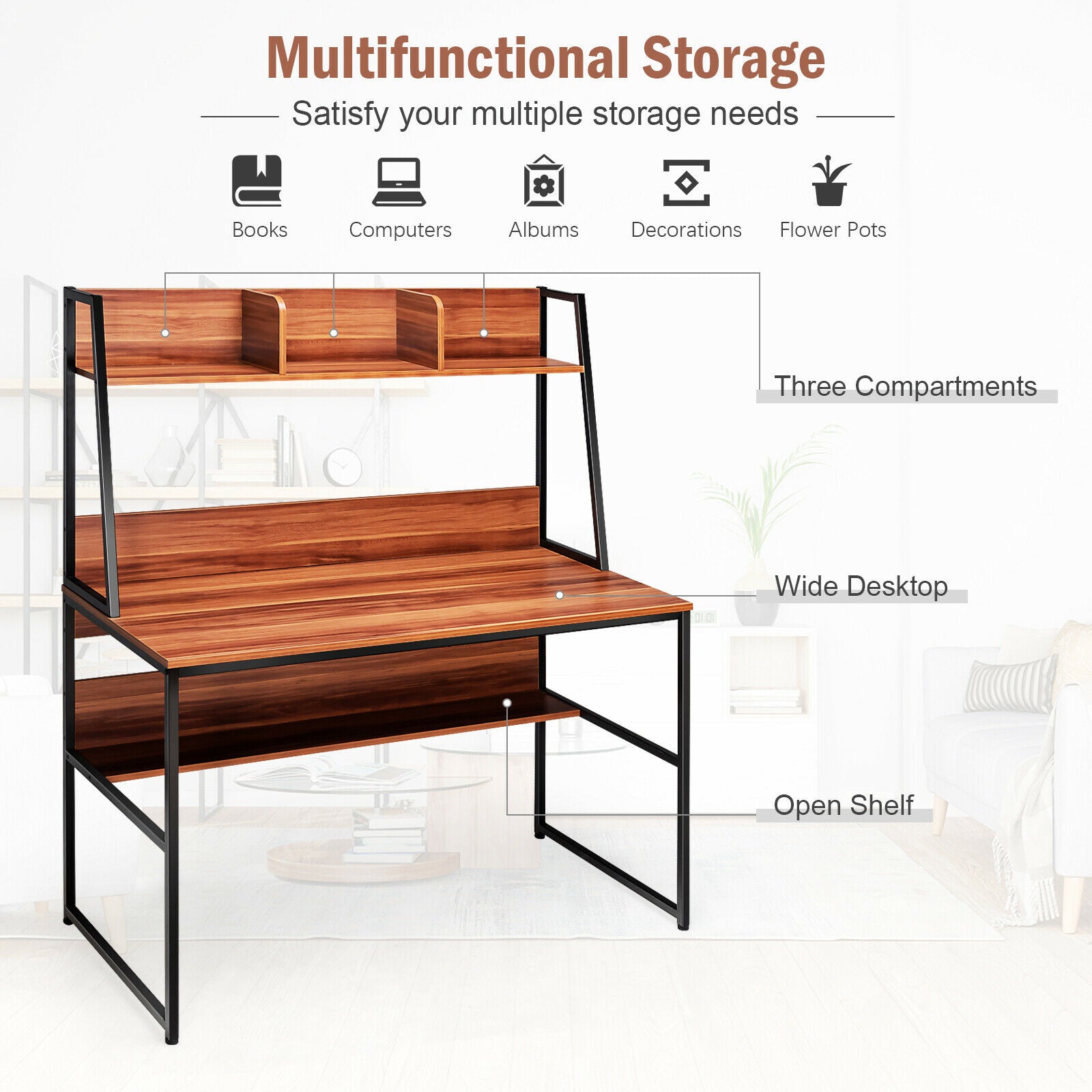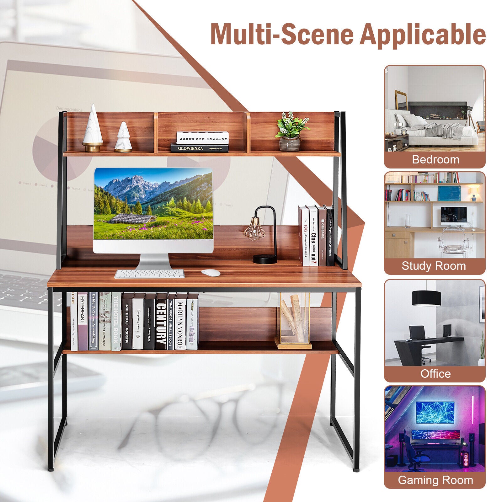 2-in-1 Computer Desk with Storage Bookshelf PC Laptop Table Writing Workstation