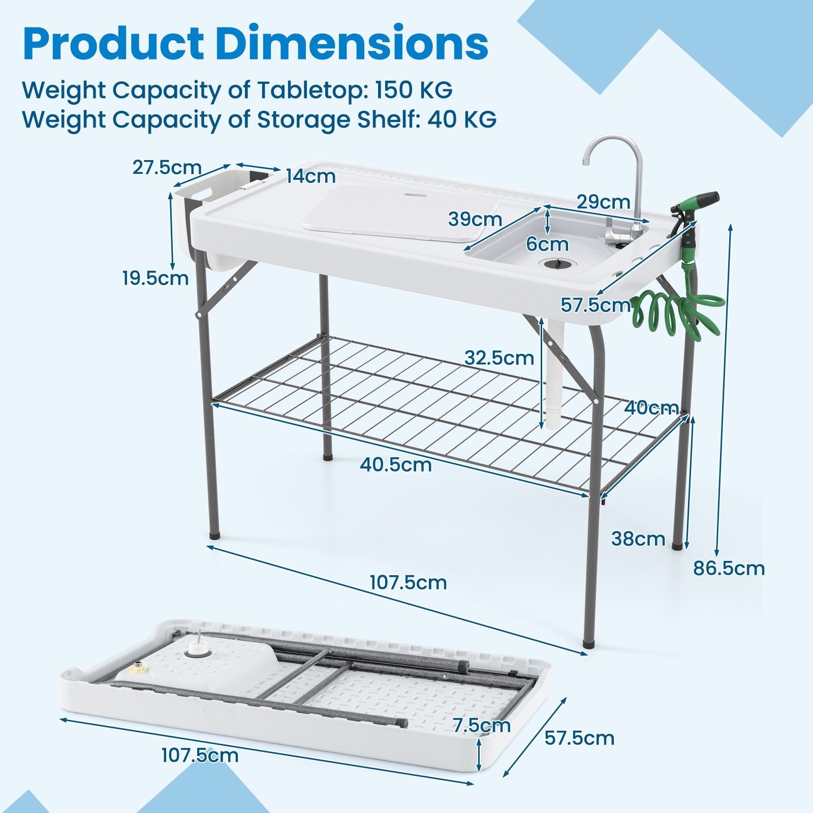 2 in 1 Foldable Fish Cleaning Table Outdoor Workstation w/ Sink Picnic Table