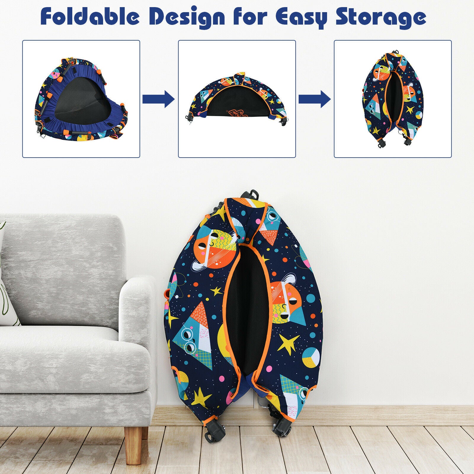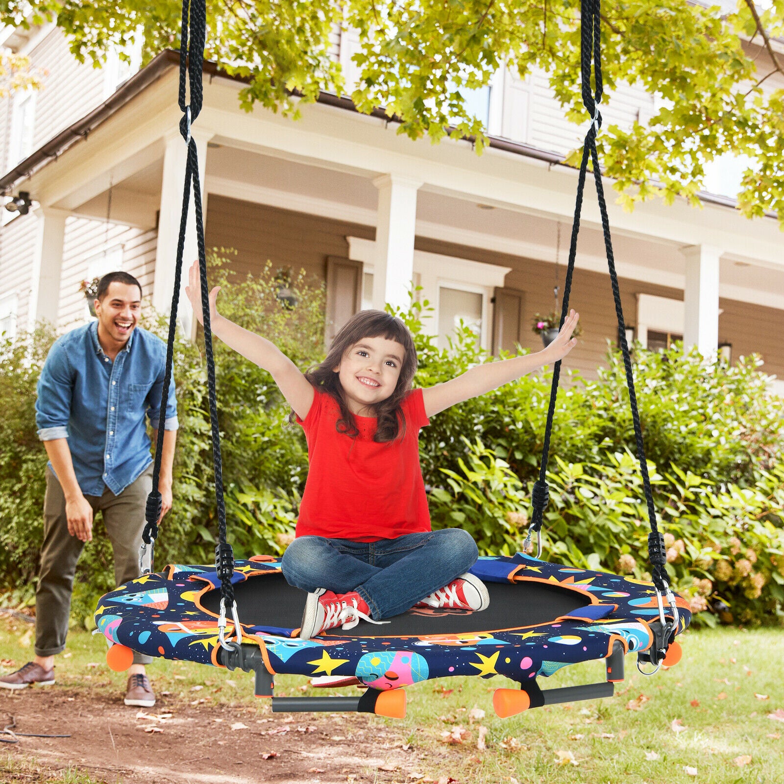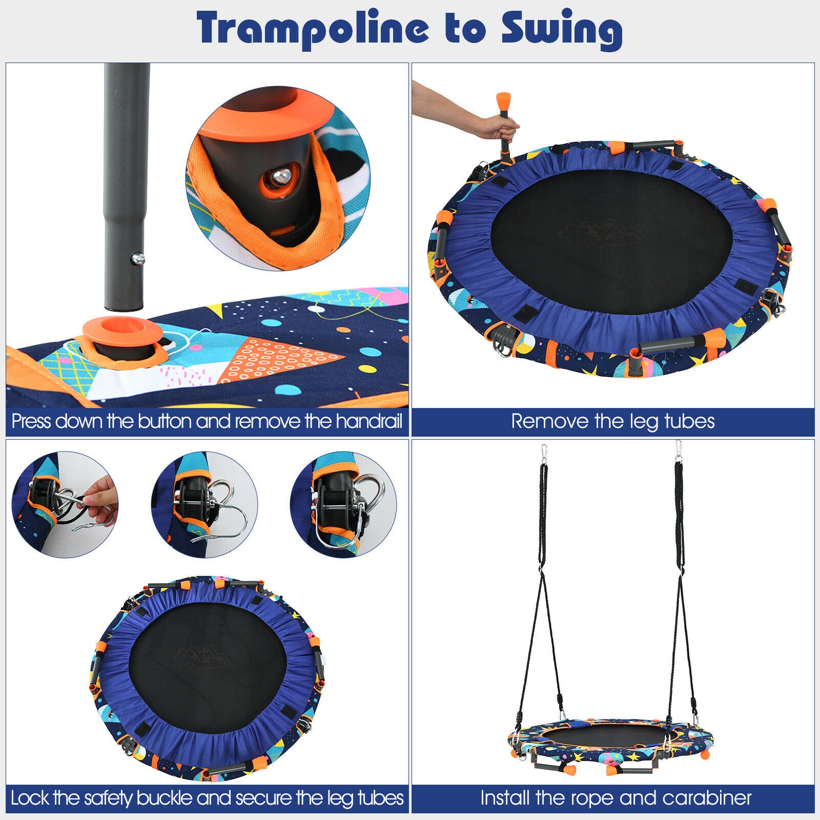 2-in-1 Foldable Kids Fitness Trampoline Height Adjustable Children Tree Swing