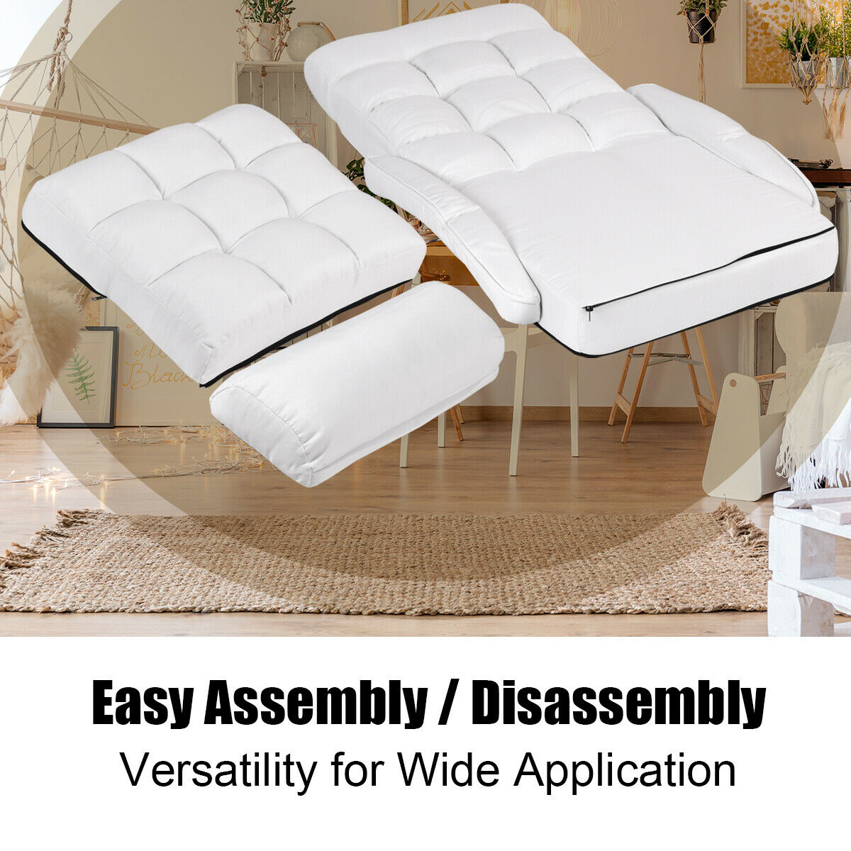 2-In-1 Folding Lazy Sofa Bed 5-Position Adjustable Armchair Floor Sofa W/ Pillow