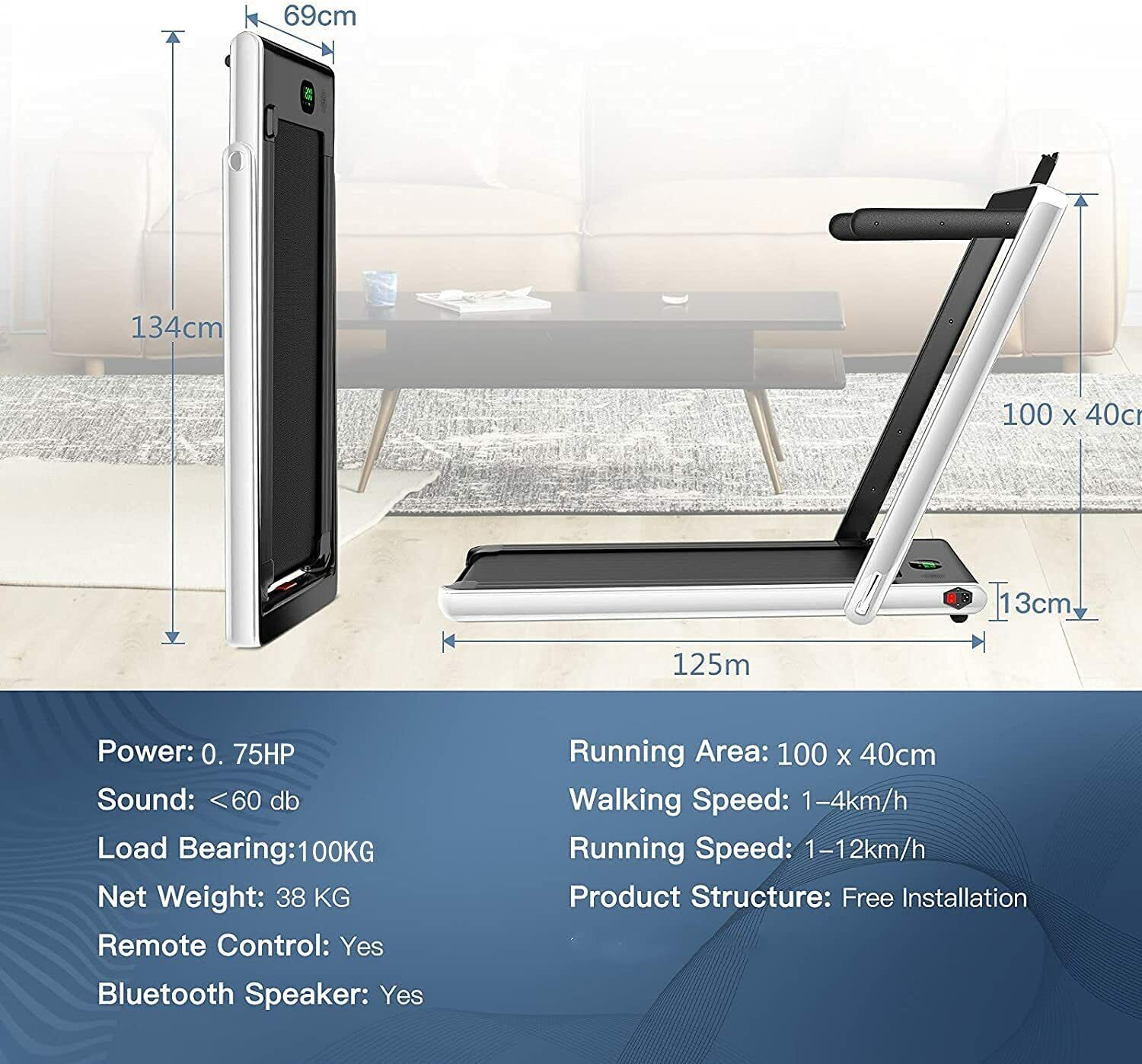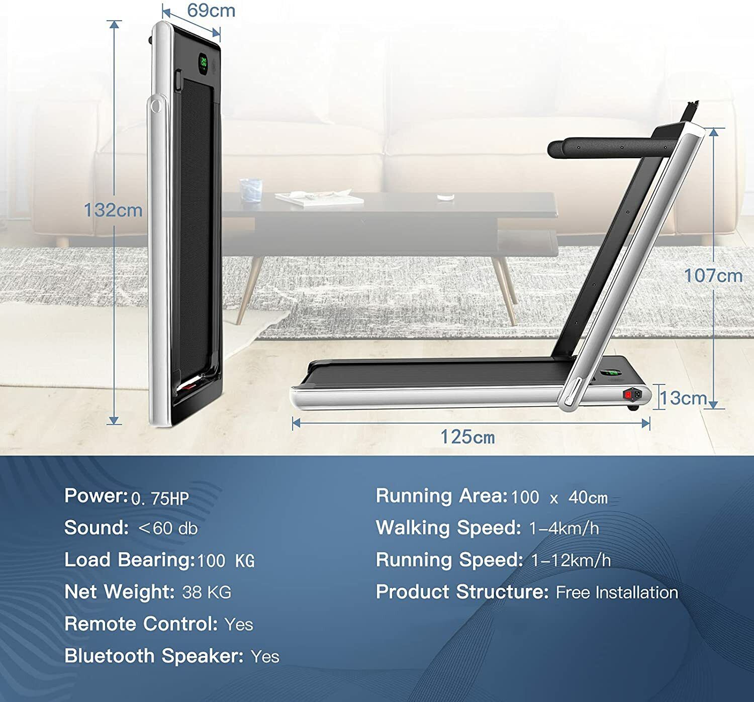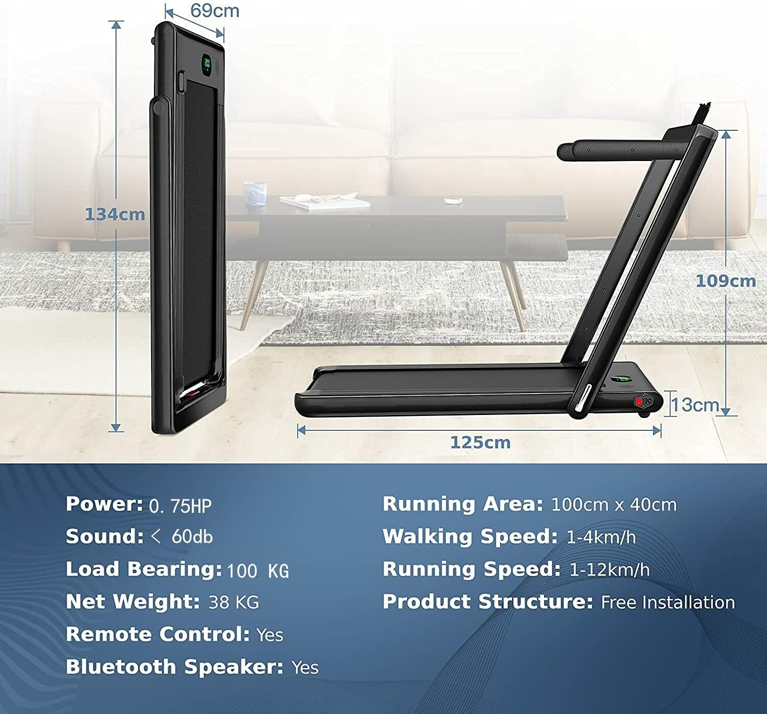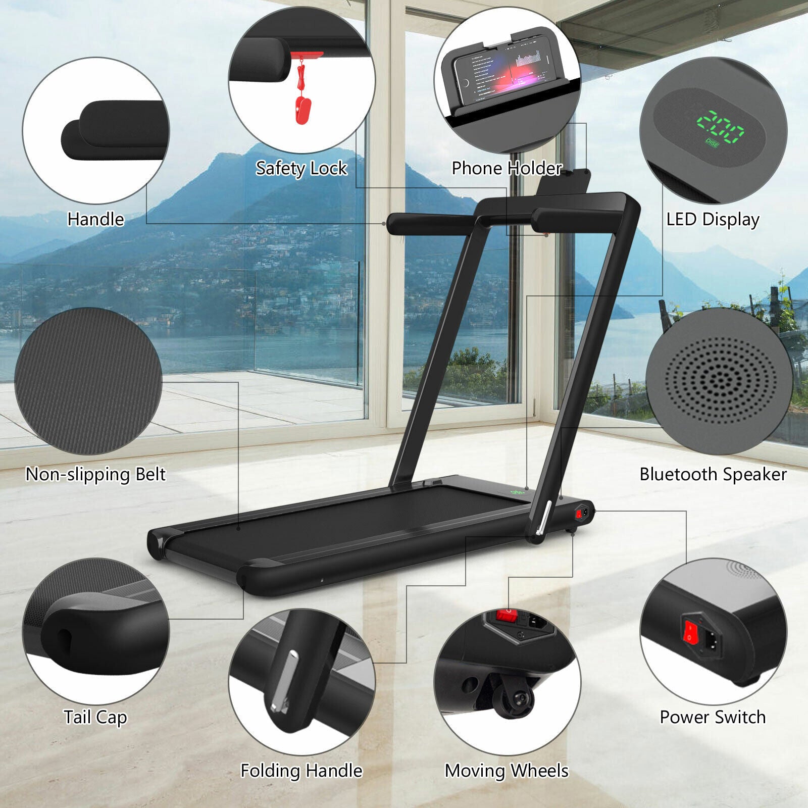 2 in 1 Folding Treadmill Electric Walking Running Machine Bluetooth LED Display