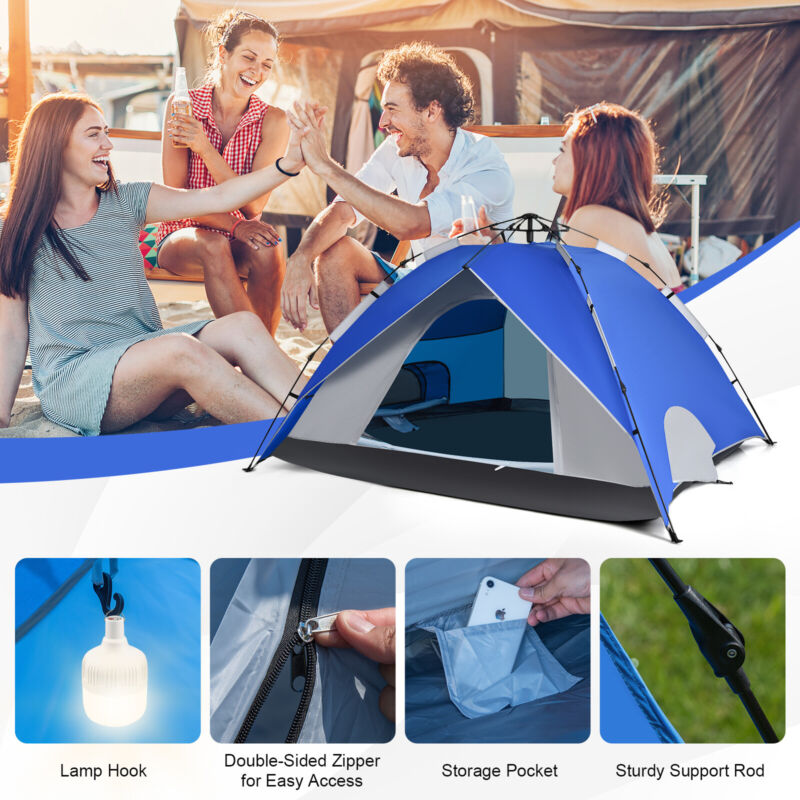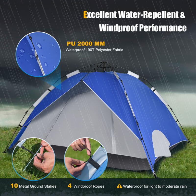 2-in-1 Instant Pop-up Tent Double-Layer Camping Tent W/ Detachable Sun Shelter