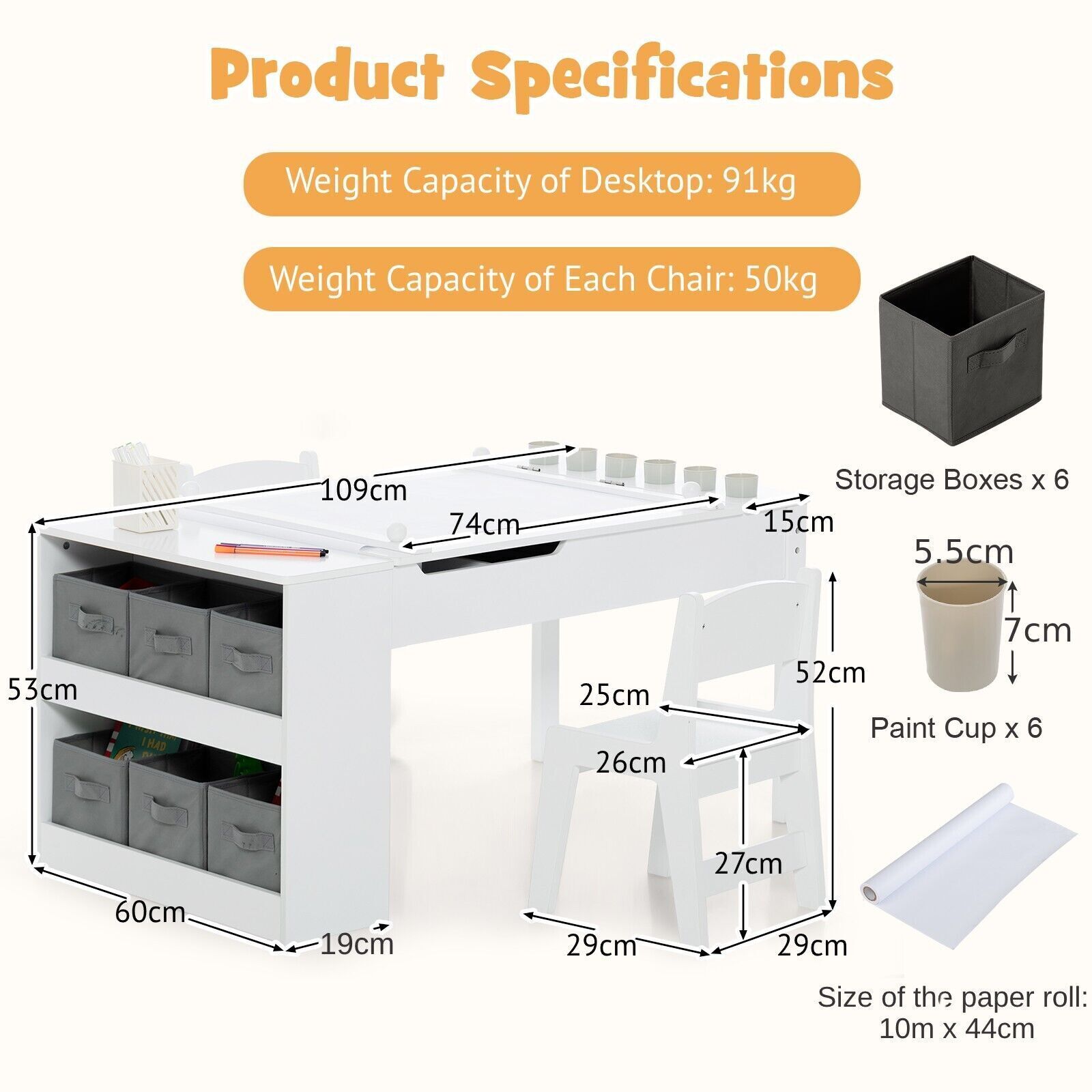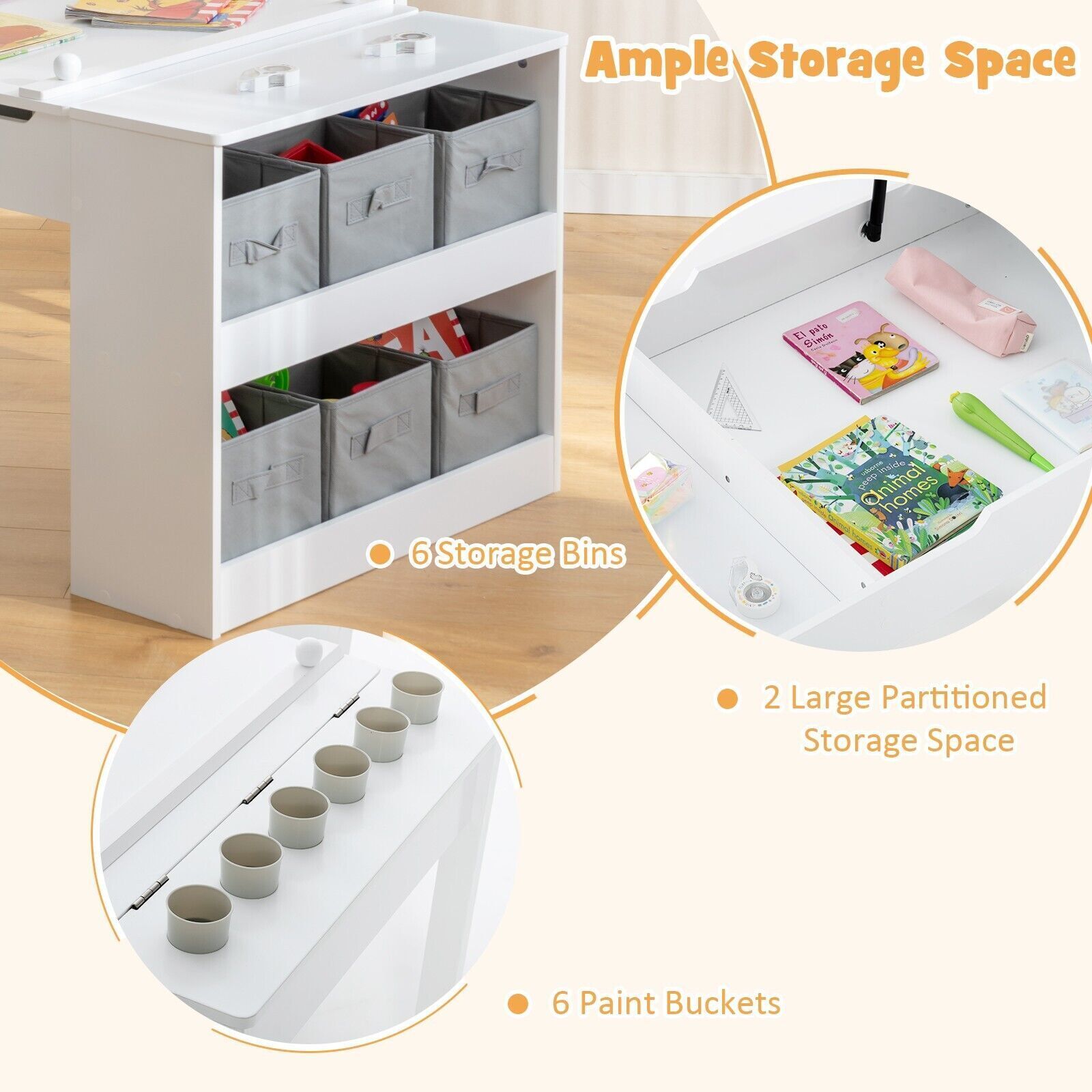 2-in-1 Kids Art Table and Chairs Set Wooden Toddler Craft Easel Desk W/ Shelves