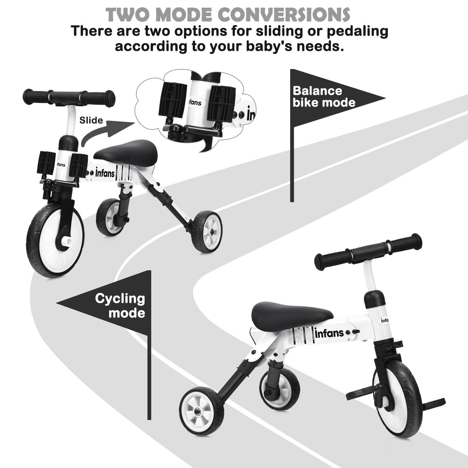 2 IN 1 Kids Tricycle Toddler Bike Trike 3 Wheels Folding Baby Balance BikeWalker
