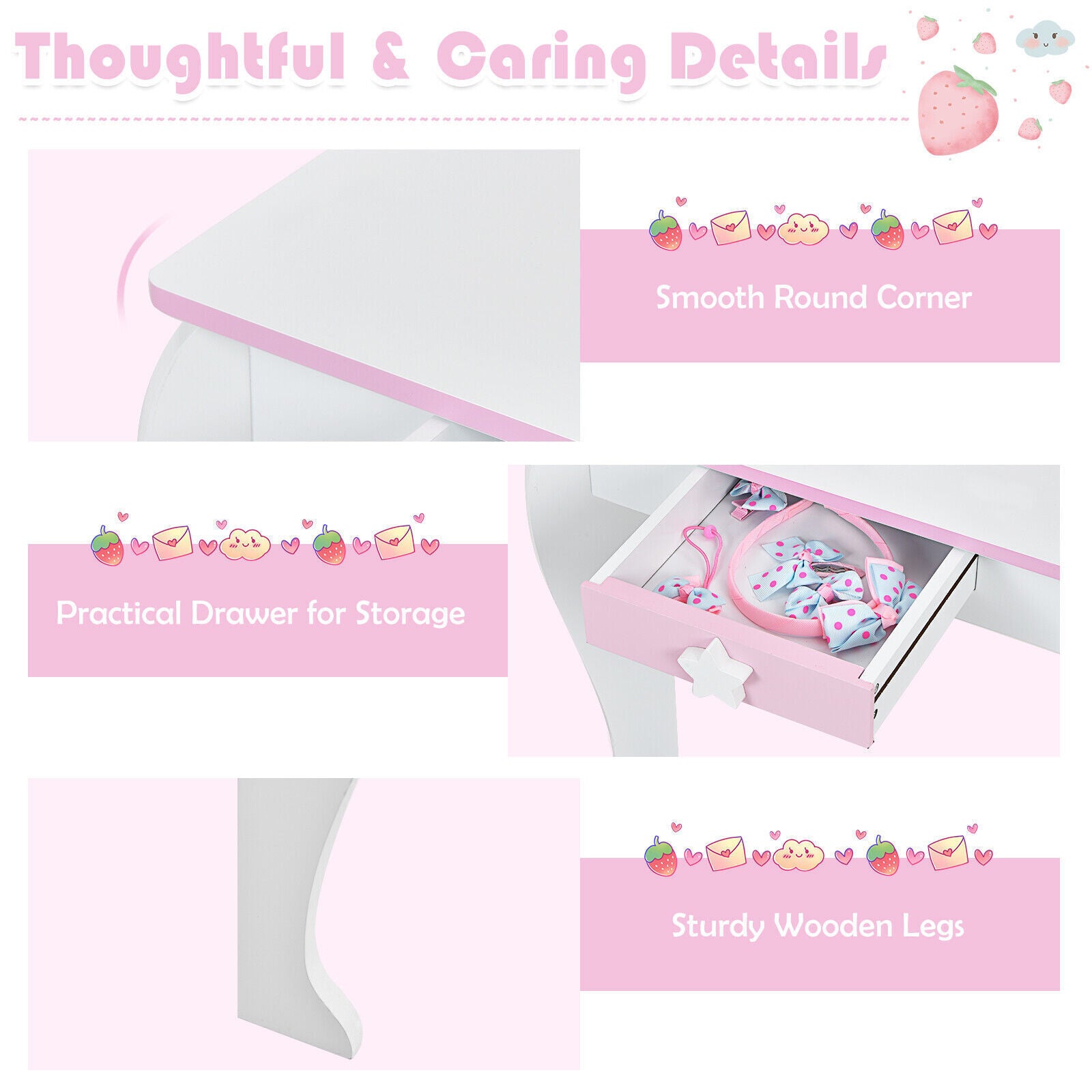 2 in 1 Kids Vanity Table and Chair Set Princess Makeup Dressing Table Writing